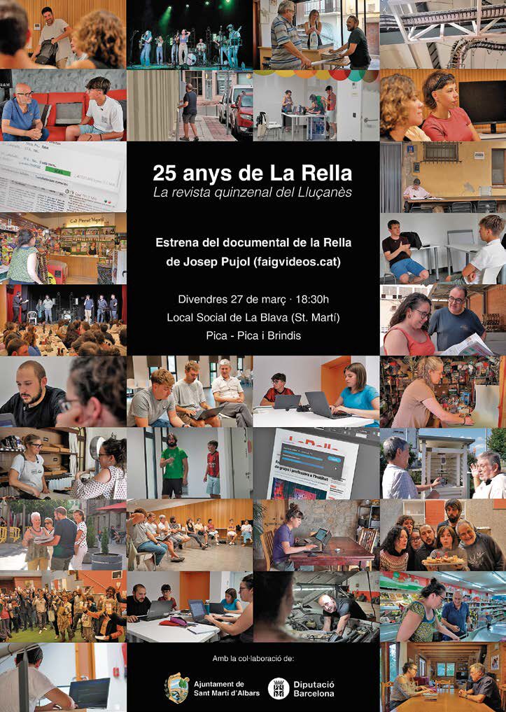 Data/es 27 març 2026 Hora 18:30 Estrena del documental: 25 anys de La Rella Compartir a + Afegir a calendari de Google + Afegir iCal / Outlook