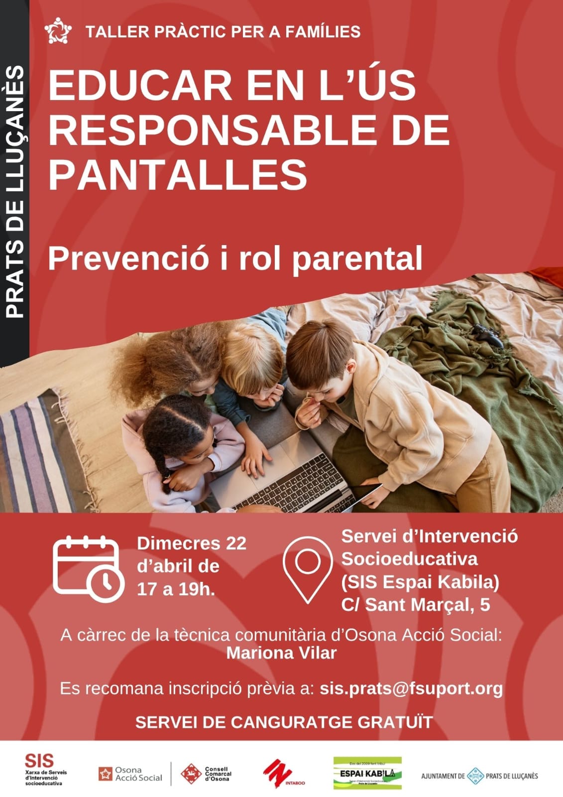 Data/es 22 abr. 2026 Hora 17:00 - 19:00 Taller pràctic per a famílies: “Educar en l’ús responsable de pantalles” Compartir a + Afegir a calendari de Google + Afegir iCal / Outlook