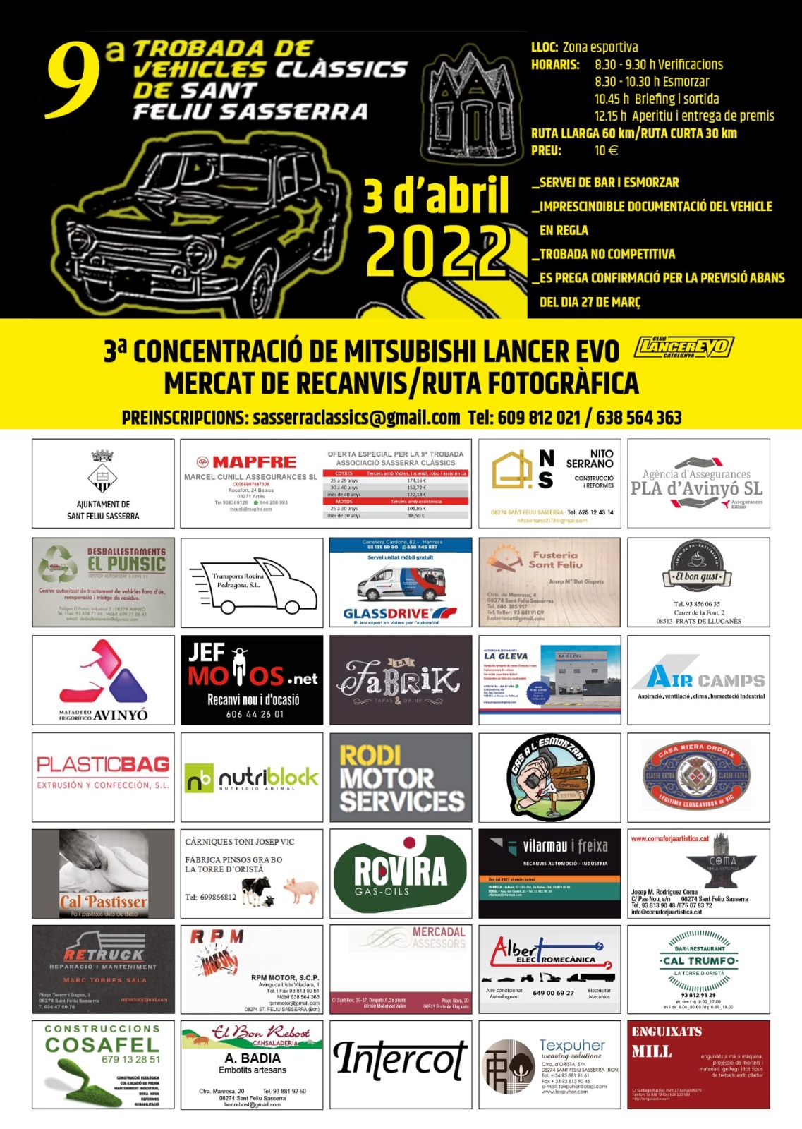 Data/es 03 abr. 2022 Expired! Hora 8:00 - 18:00 Trobada de clàssics a Sant Feliu Sasserra Compartir a + Afegir a calendari de Google + Afegir iCal / Outlook