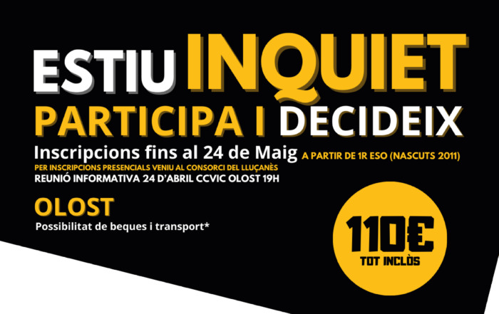 Amb l'arribada del bon temps, comencem a pensar amb les propostes d’oci i de lleure i segurament per molts joves i famílies del Lluçanès això és sinònim d’“Estiu Inquiet”. [...]