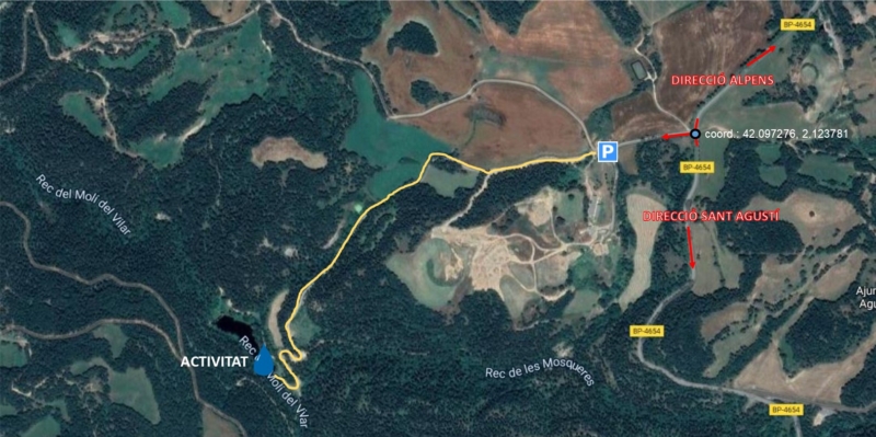 La sortida es portarà a terme a Sant Agustí de Lluçanès, a l’embassament del rec del Molí del Vilar, prenent el trencant entre el punt quilomètric 10 i 11 de la carretera BP-4654 de Sant Agustí de Lluçanès a Alpens (Google Maps).