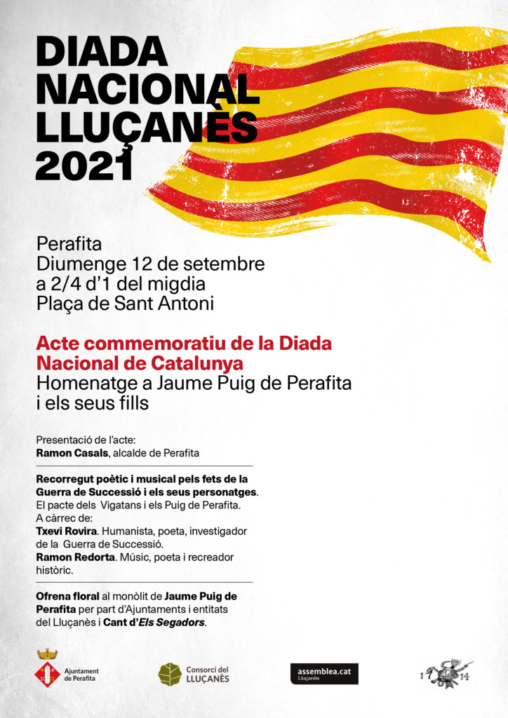 Diumenge 12 de setembre, a 2/4 d’1 del migdia se celebrarà la tradicional commemoració de la Diada Nacional de Catalunya al Lluçanès, a Perafita amb l’Homenatge a Jaume Puig i els seus fills.