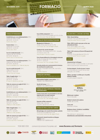 les diverses propostes formatives previstes per portar a terme entre setembre i gener a diferents pobles del Lluçanès.