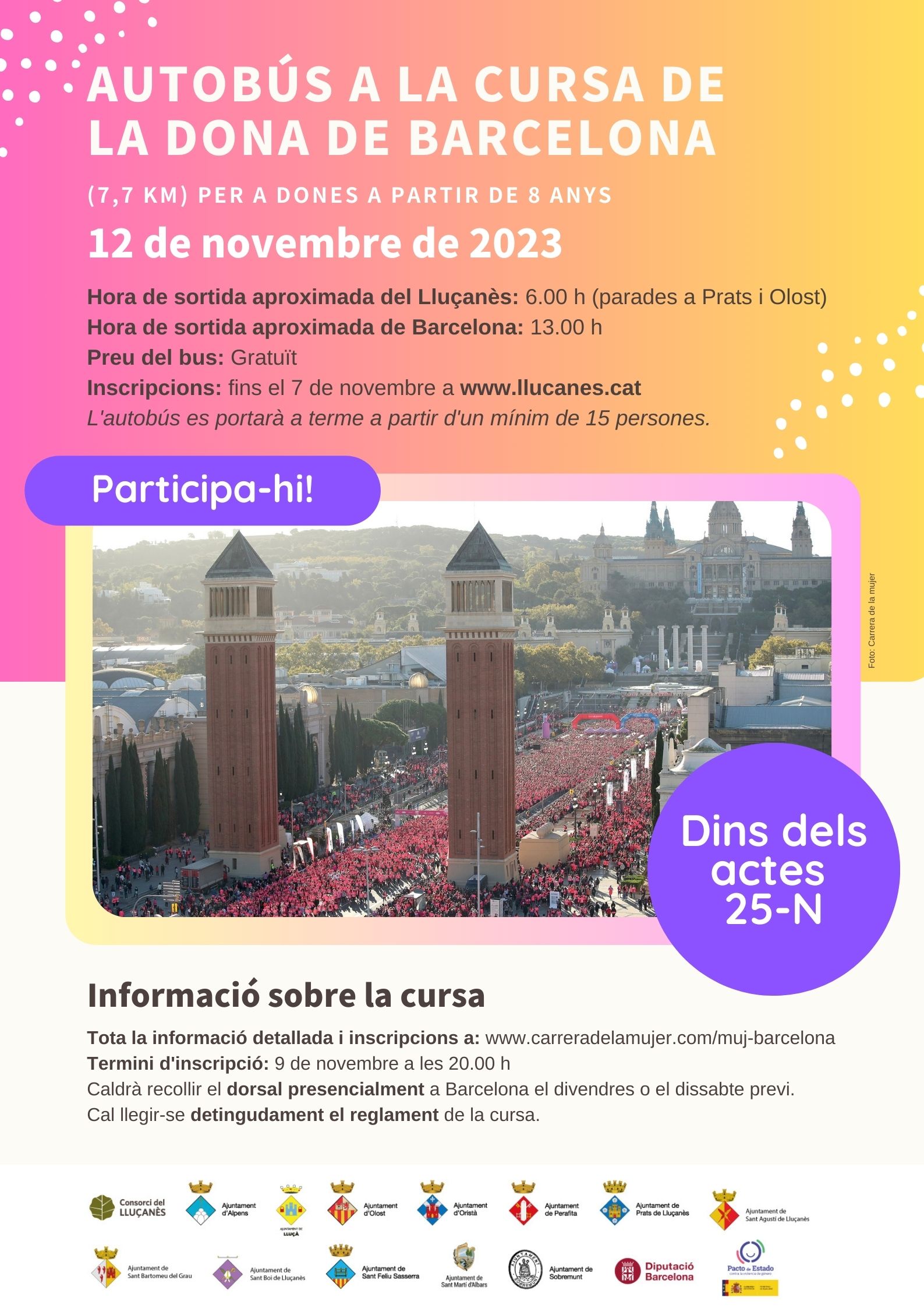 En el marc dels actes del 25-N, Dia Internacional per l’Erradicació de la Violència vers les Dones, el Consorci del Lluçanès organitza per primera vegada un autobús per participar a la Cursa de la Dona de Barcelona.