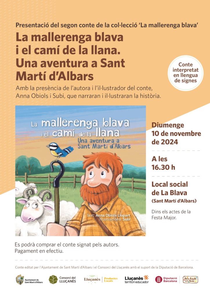 Després de presentar el primer conte ‘La mallerenga blava i el camí de la llet’ el passat mes de febrer, el Consorci del Lluçanès proposa endinsar-se en una nova aventura d’aquest personatge, aquesta vegada per conèixer diverses curiositats sobre la llana. En aquesta ocasió, la història té com a escenari el municipi de Sant Martí d’Albars.