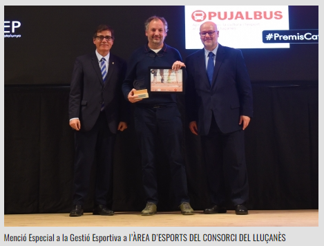 El Consorci del Lluçanès va rebre el passat 17 de març una menció especial en el marc dels VIII Premis Catalunya a la Gestió Esportiva, impulsats per l’Associació Catalana de Gestors Esportius Professionals (ACGEP).