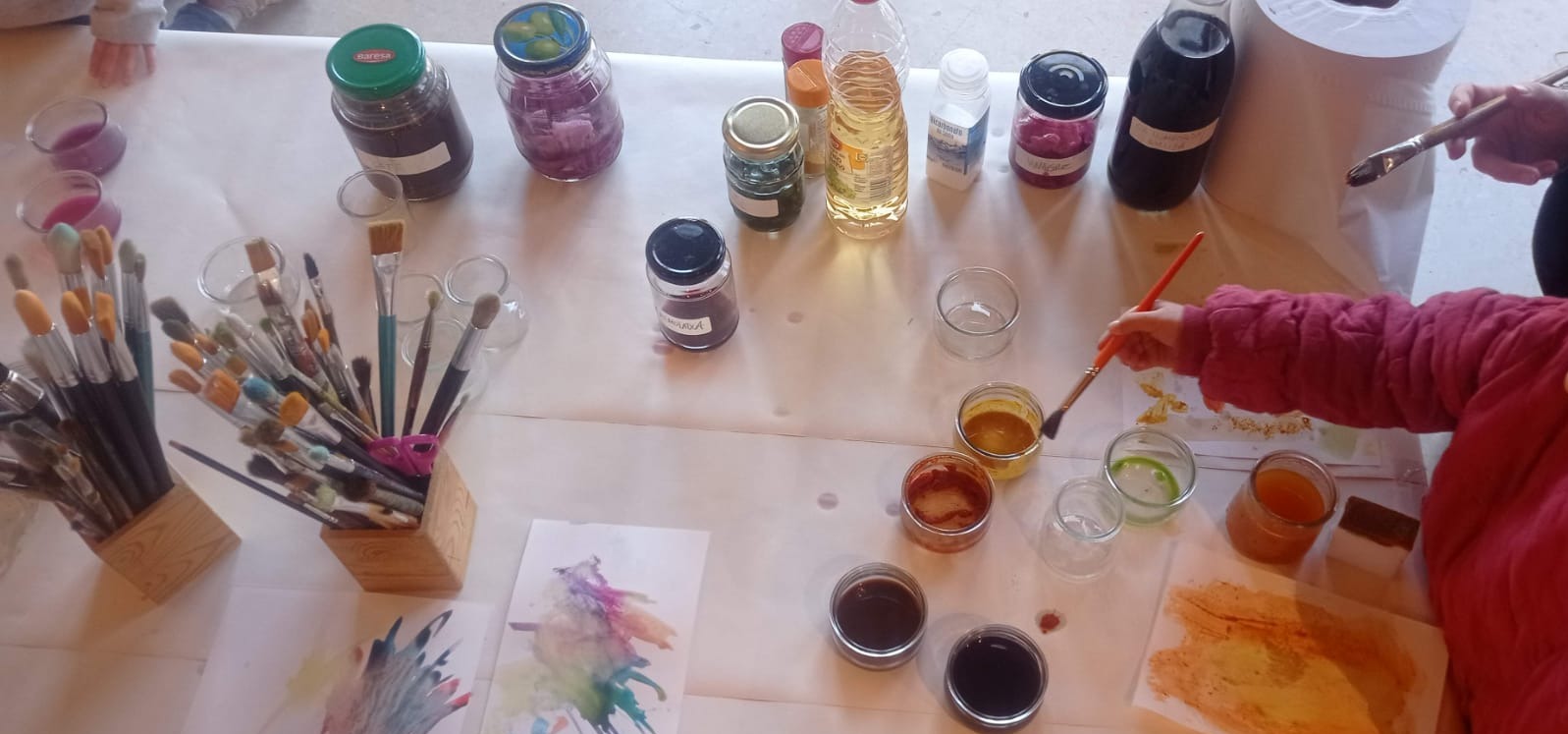 Per adaptar-se a les necessitats evolutives de cada franja d’edat, el taller es va estructurar en dos formats diferenciats. El grup d’I2 i I3, amb acompanyament familiar, va centrar l’experiència en l’experimentació sensorial. El grup d’I4 i I5 va incorporar una proposta artística vinculada al conte La mallerenga blava i el camí de la llet, que va actuar com a fil conductor de la sessió i va permetre aprofundir en la dimensió narrativa i simbòlica de la proposta.