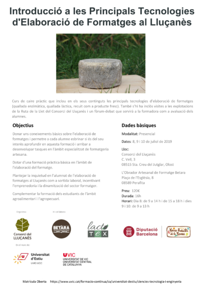 El curs compta amb la col·laboració de l’empresa lacto-tex, Formatges Betara i la Diputació de Barcelona.