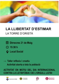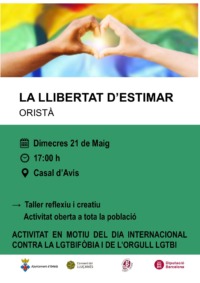 Aquest taller combina una primera part de reflexió —amb el visionat d’un reportatge sobre el fenomen del sexili i una conversa sobre les experiències de les persones LGTBIQ+ en entorns rurals— amb una segona part artística, en què les persones participants elaboraran adhesius amb el lema “La llibertat d’estimar”.