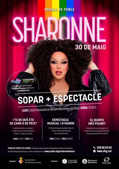 La vetllada culminarà amb l’actuació de Sharonne, reconeguda artista drag, guanyadora de Drag Race España i participant al Benidorm Fest, que oferirà un espectacle musical i d’humor vibrant i carregat de missatge. I per acabar, tindrà lloc una edició especial del tradicional quinto, el més picant de l’any!