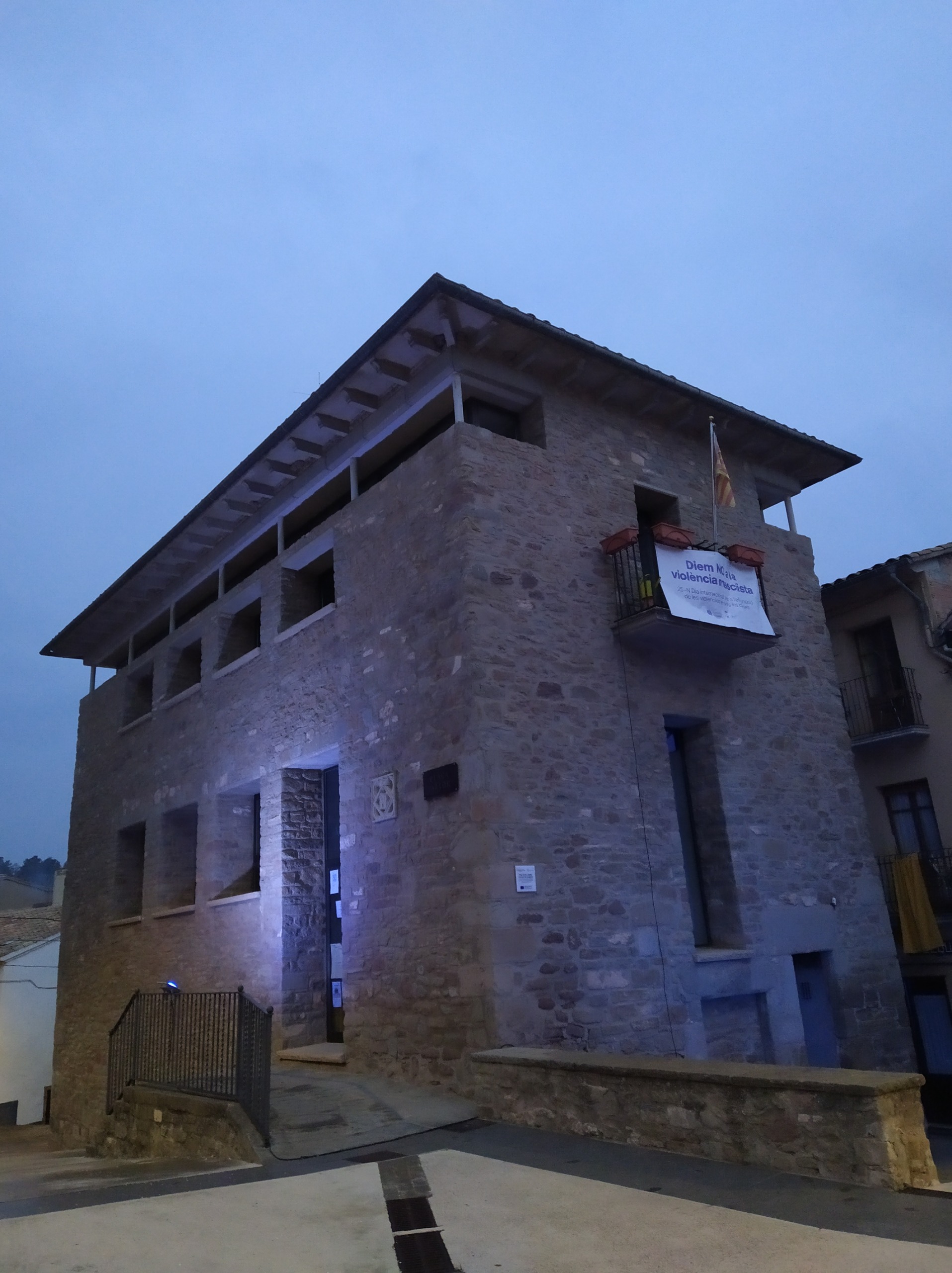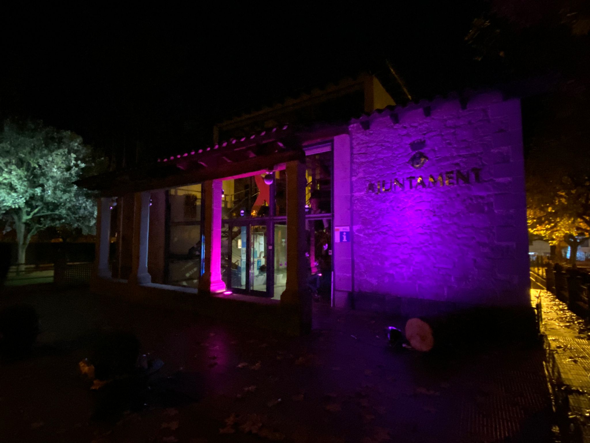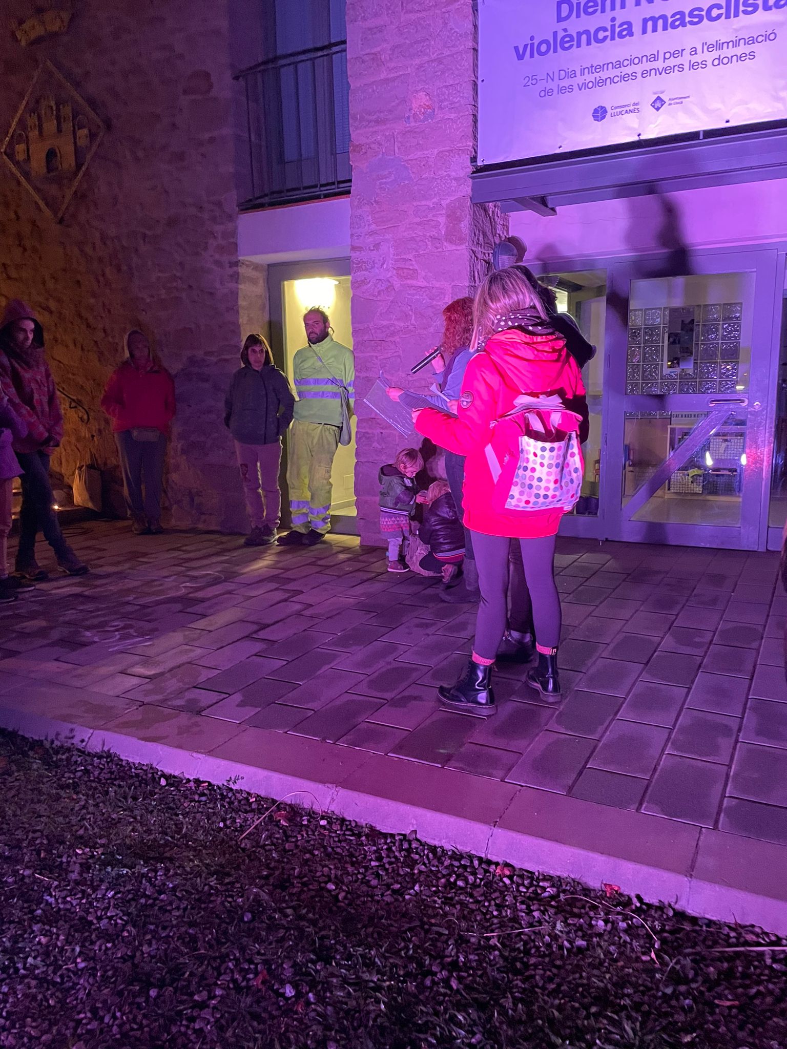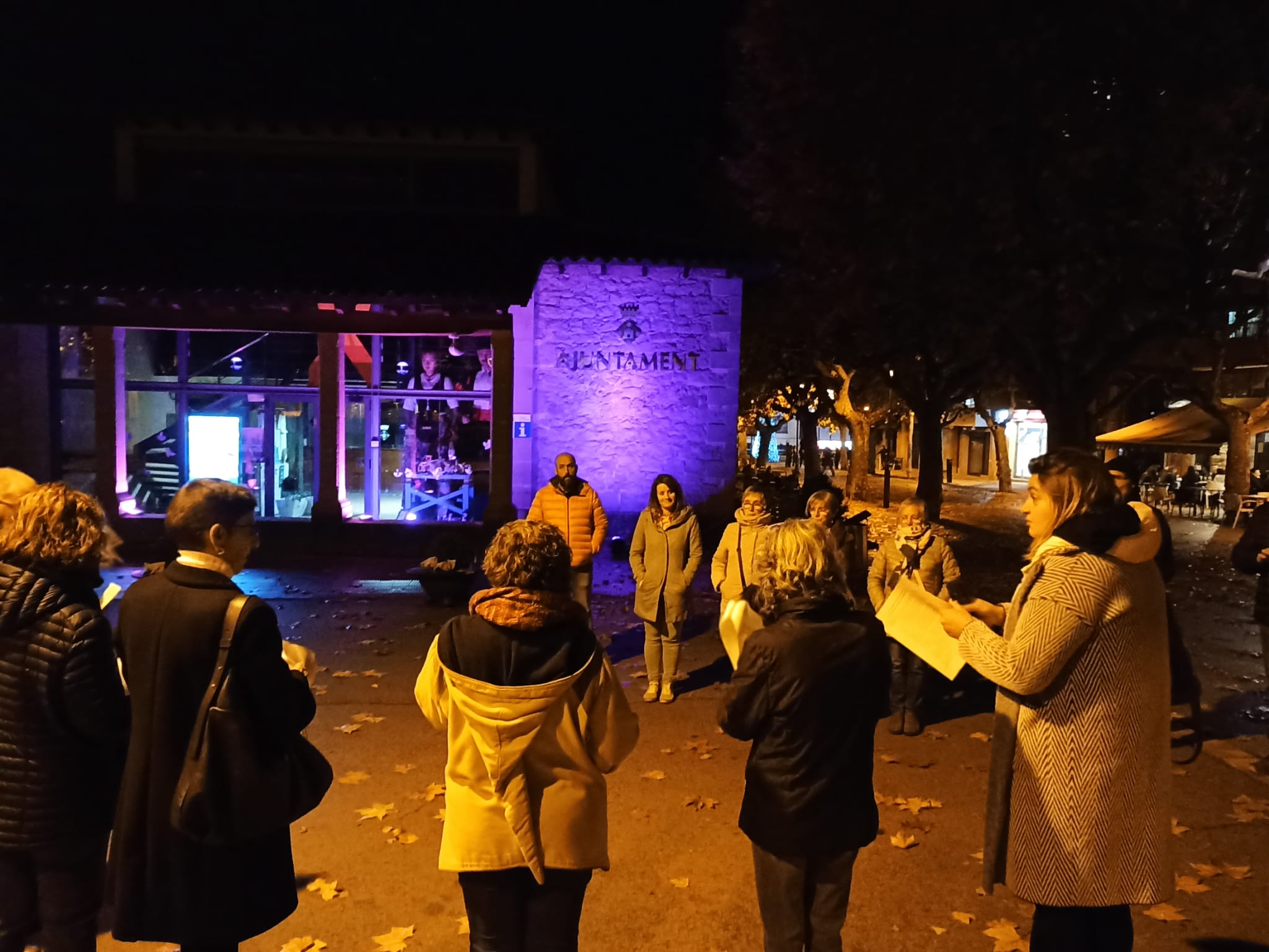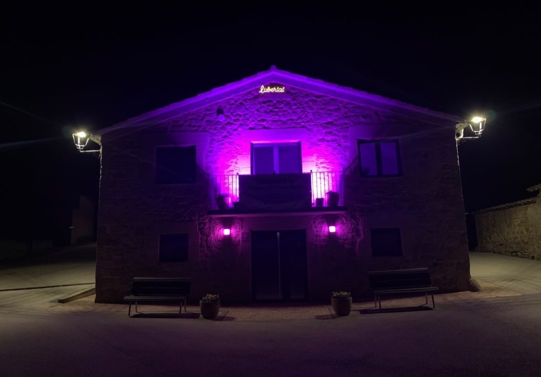 S’han il·luminat les façanes dels ajuntaments de color lila durant la tarda i nit del 25N com a acte simbòlic per expressar el rebuig a les violències contra les dones. També s’han penjat pancartes als balcons i els municipis s’han sumat a la lectura del manifest unitari.