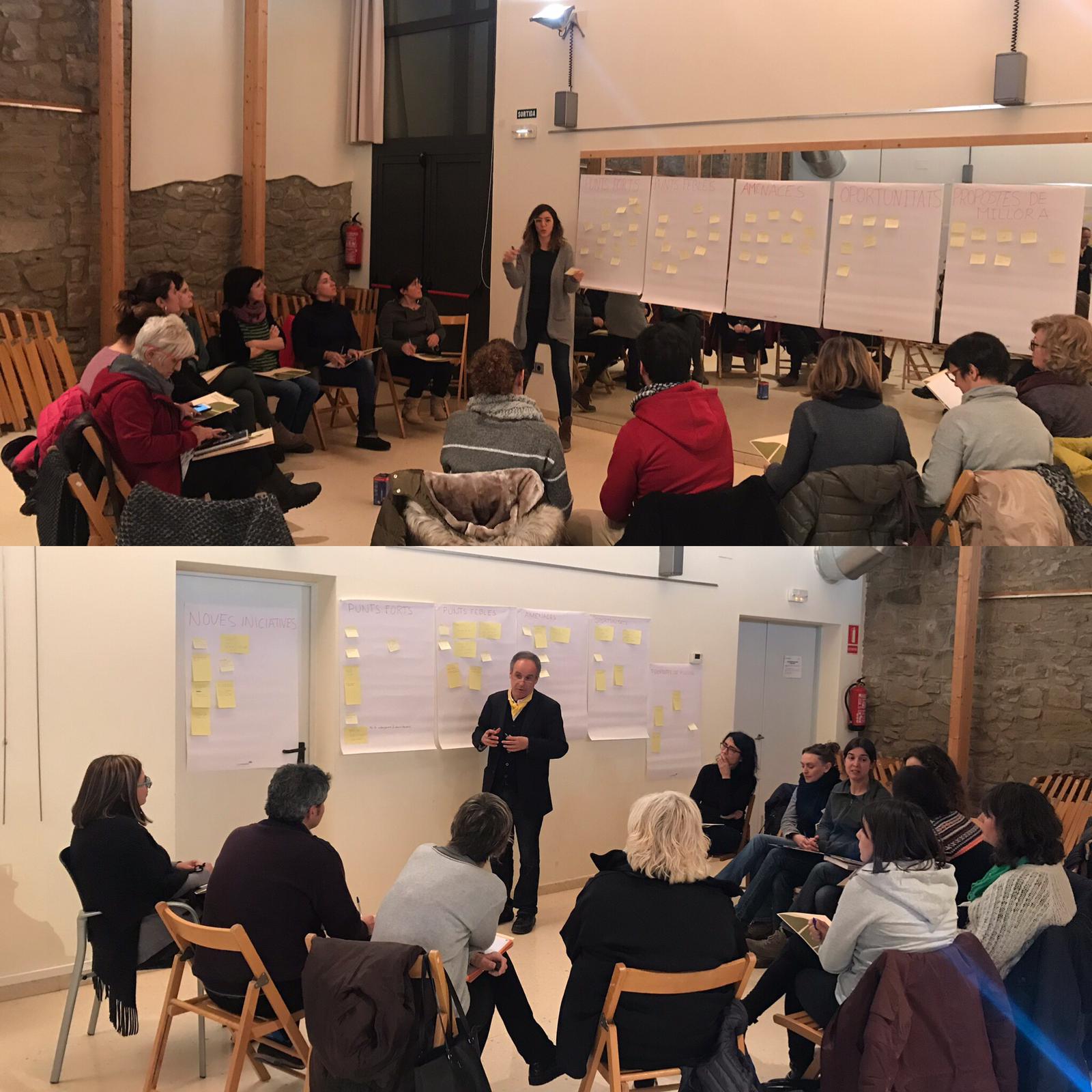 La segona part va consistir en una dinàmica de treball per grups, on es van posar sobre la taula els punts forts, punts febles, amenaces, oportunitats, propostes de millora i noves oportunitats de la governança educativa al Lluçanès.