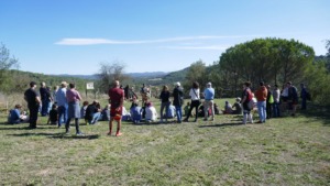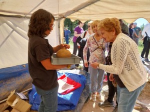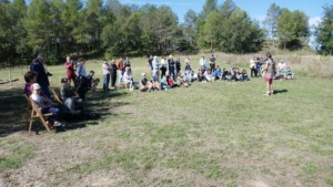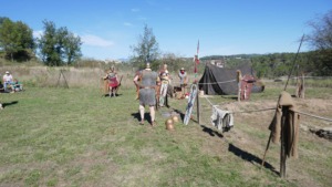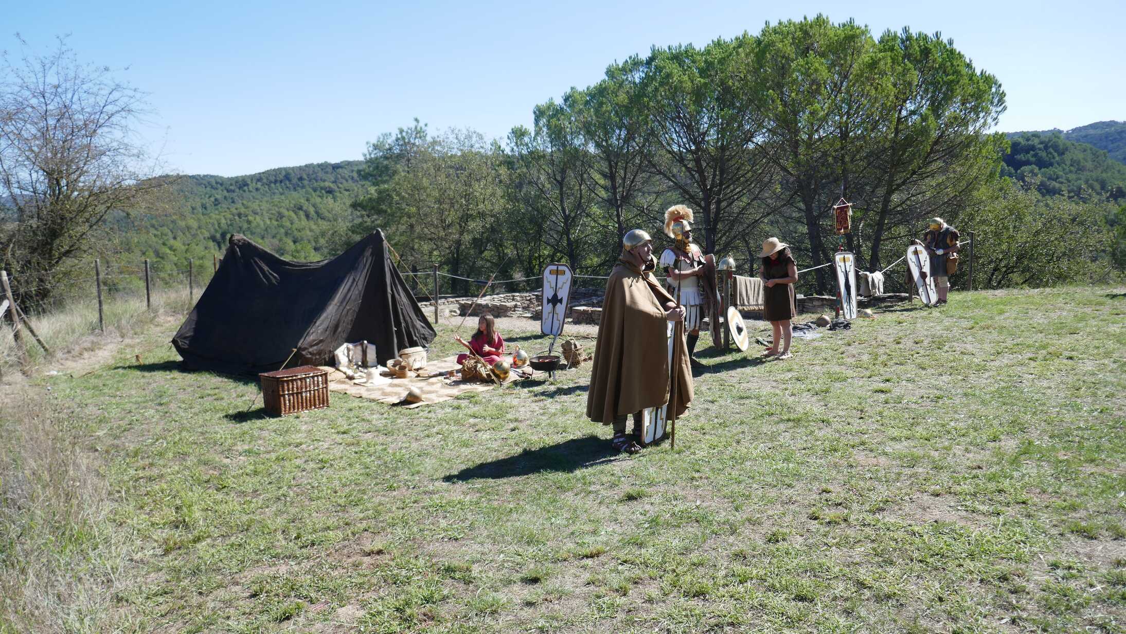 En paral·lel a la presentació de les excavacions, es van dur a terme dues activitats més. En la primera, en Robert Tamba va explicar la metodologia de treball emprada a Puig Ciutat, insistint sobretot en la importància del registre i entrant amb més detall per descriure el procés d’una fotogrametria, que és un mètode que permet generar models 3D a partir d’una seqüència de fotografies. La segona activitat era de recreació històrica. L’Eduard Ble, amb altres membres del grup Evocati, van escenificar el dia a dia d’un campament romà posant especial èmfasi en les diferents etapes d’un enfrontament cos a cos entre soldats.