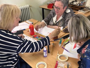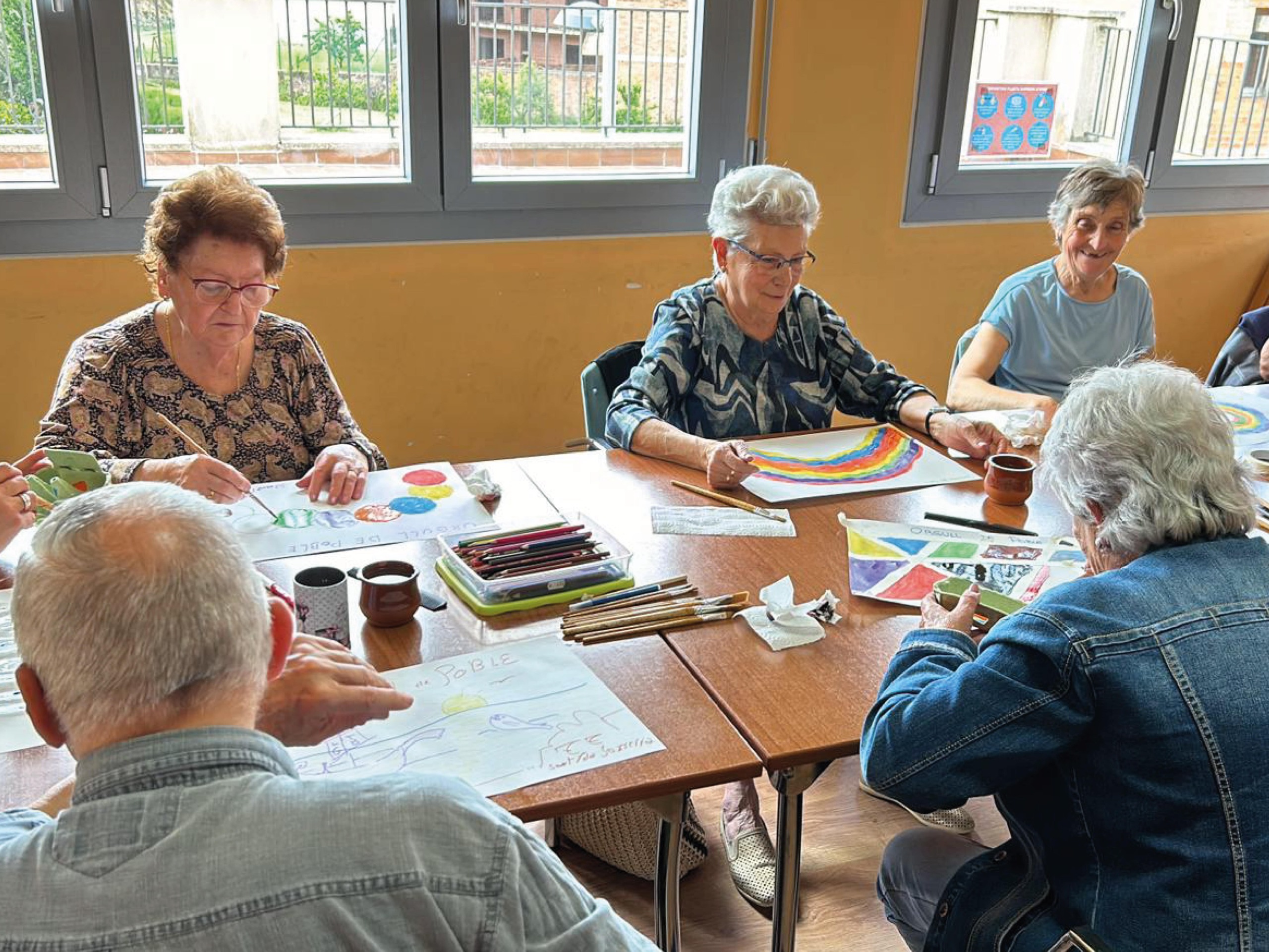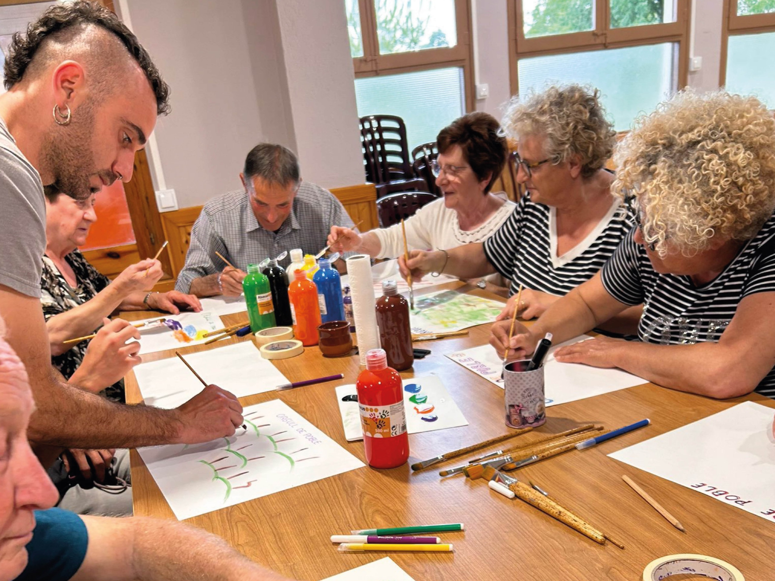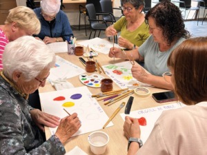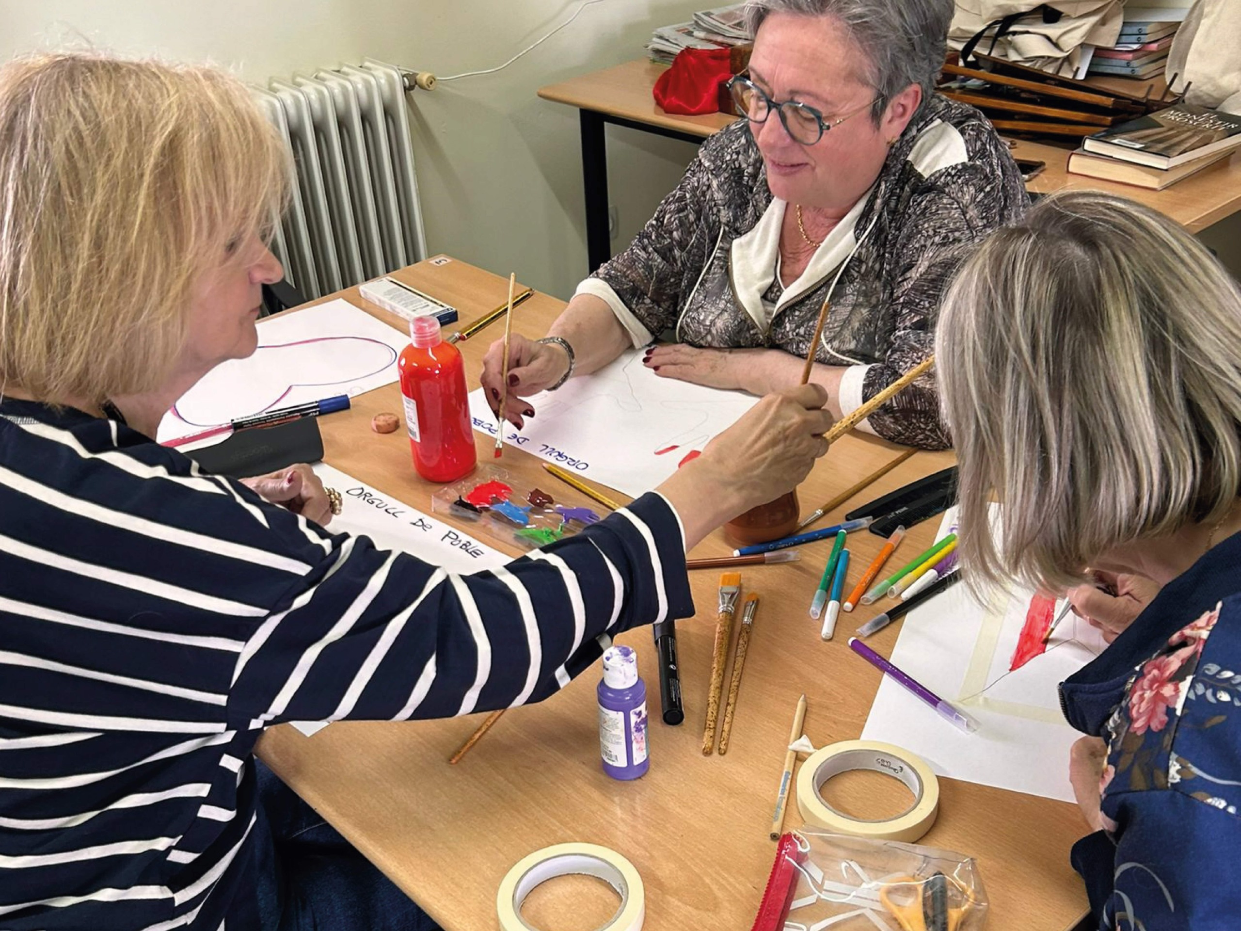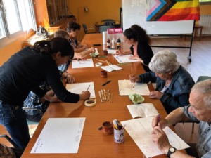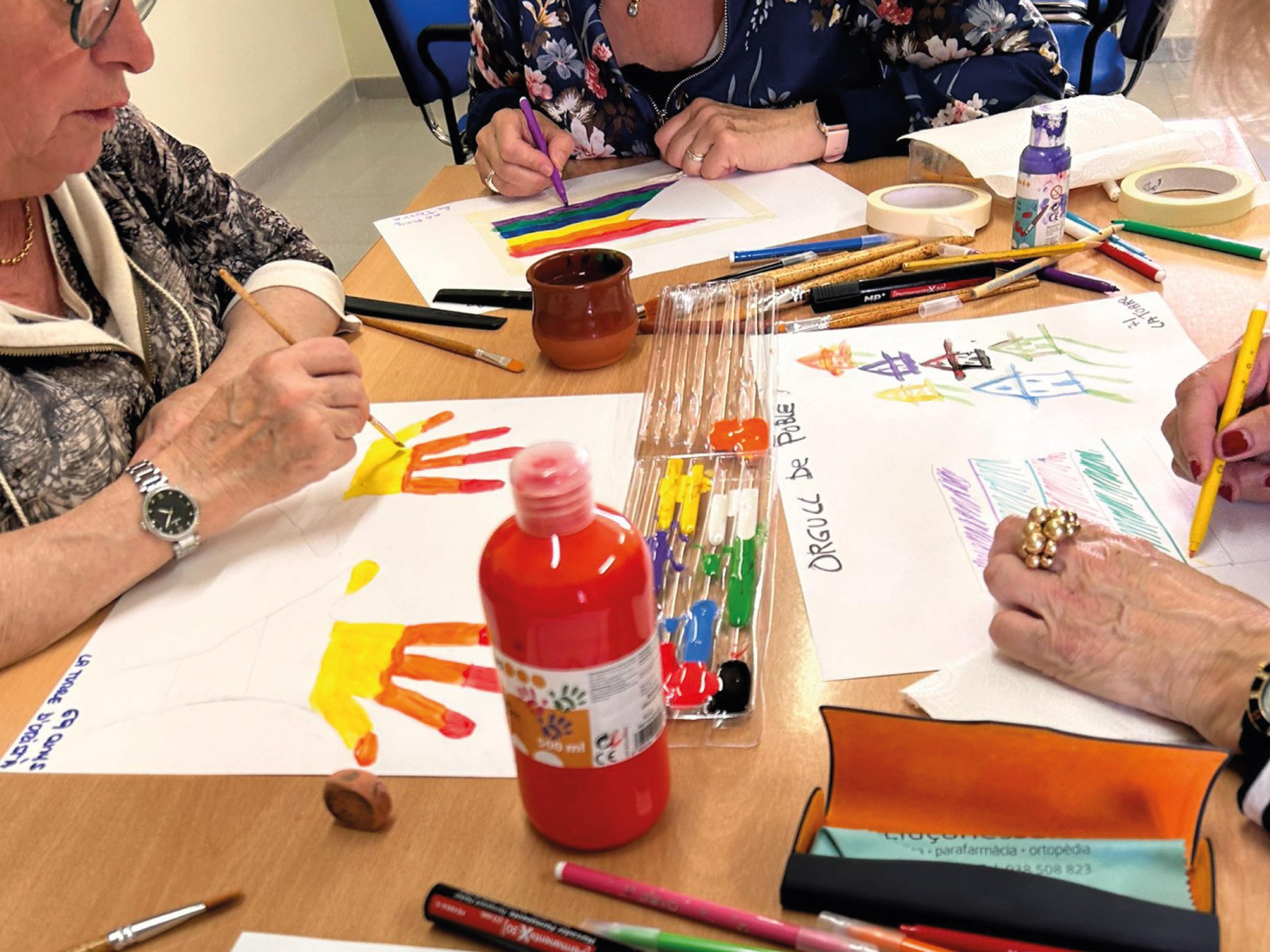 En una segona part, s’ha portat a terme un taller creatiu. Amb un full Din A3, tots els participants han escrit la frase “Orgull de poble” i a continuació, utilitzant tots els colors han fet una petita creació artística.