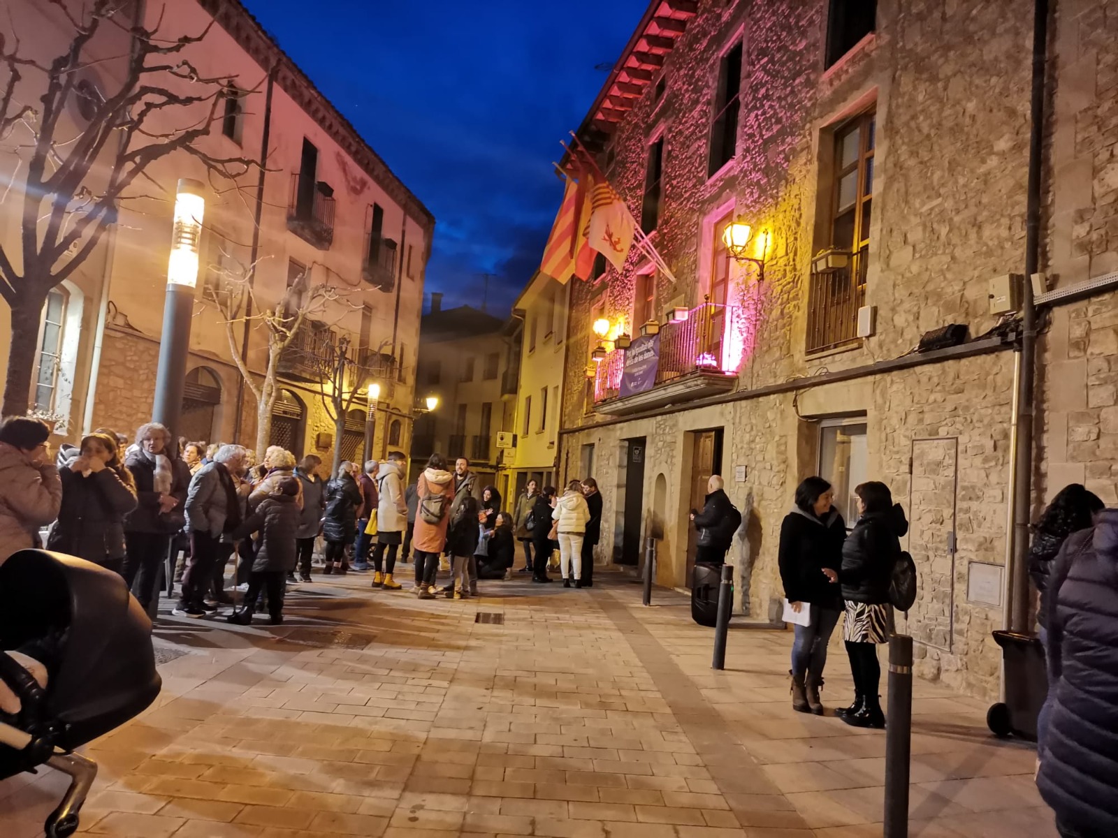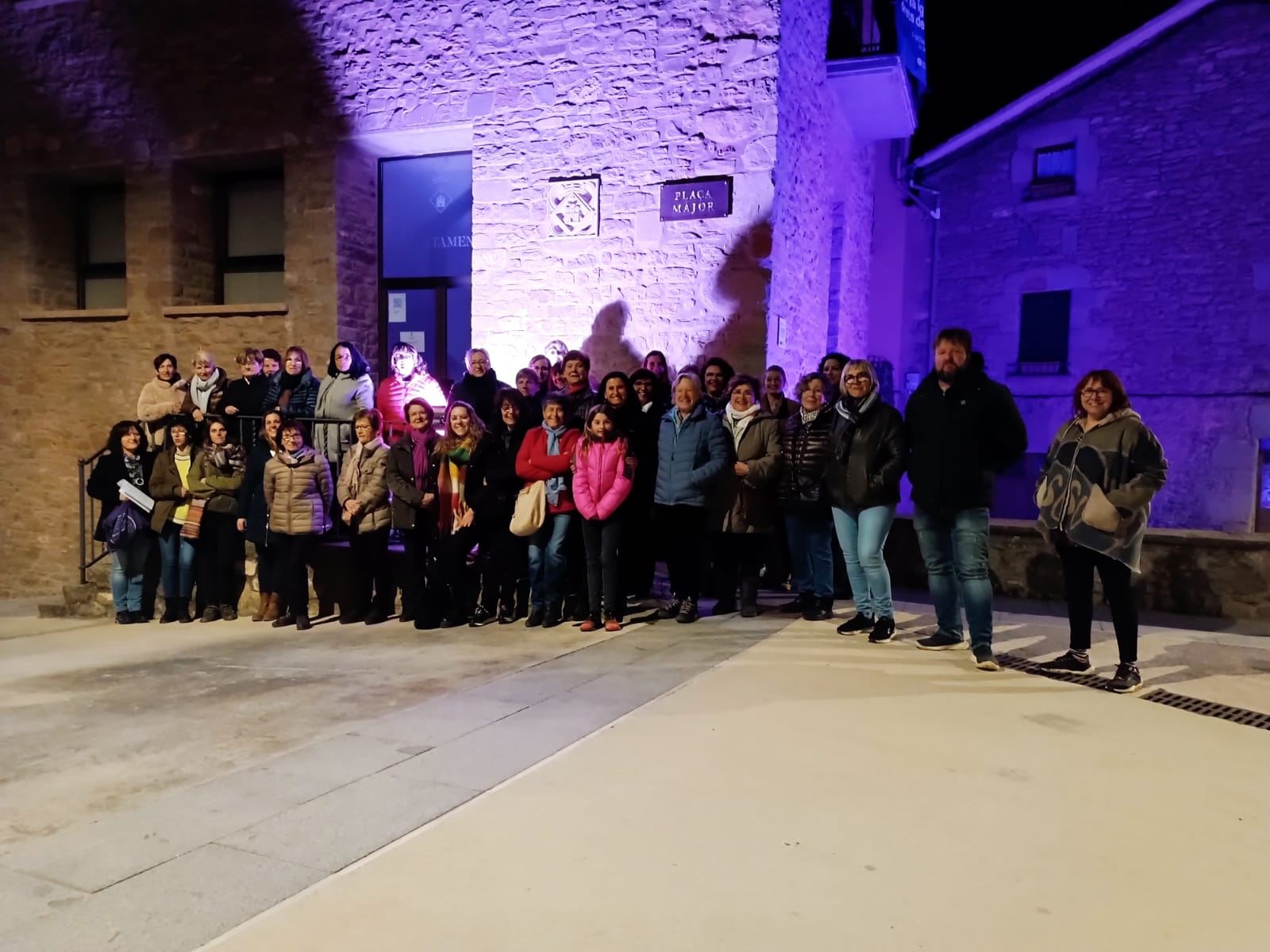 D’altra banda, molts dels ajuntaments van fer una encesa de llums liles i, a part de la lectura del manifest, van penjar una pancarta reivindicativa a les façanes dels ajuntaments.