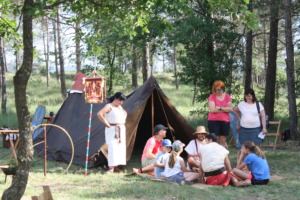 Els tallers que es van desenvolupar dissabte a la tarda, van aconseguir de forma experimental, apropar als visitants familiars a la forma de vida del campament, amb multitud d’elements i components reproduïts i recreats dels originals trobats en diferents jaciments d’origen romà.