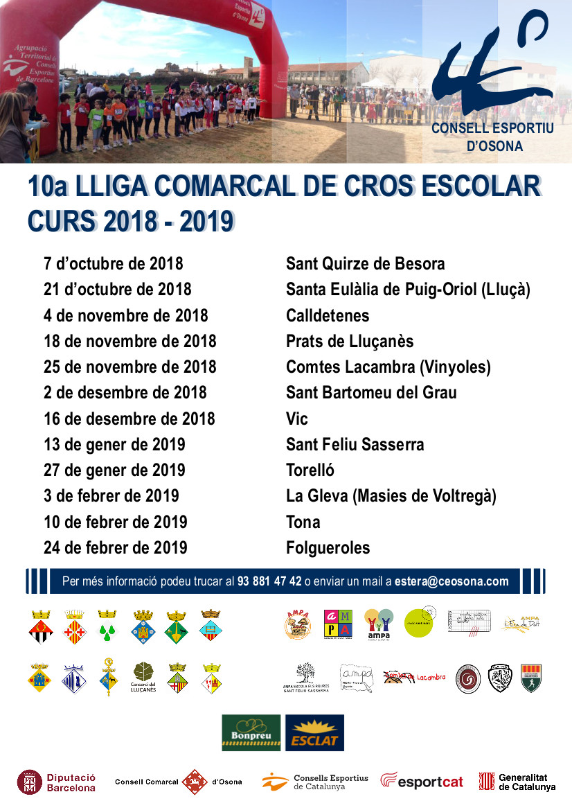 El passat 7 d’octubre va començar la desena lliga comarcal de cros escolar i finalitzarà 24 de febrer a Folgueroles.