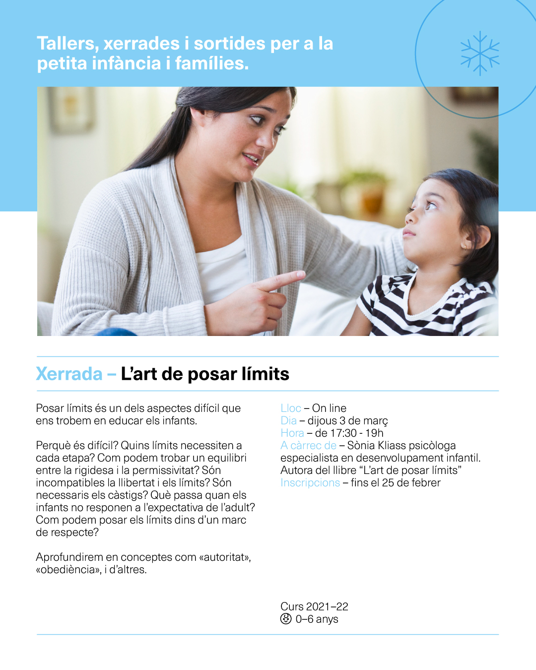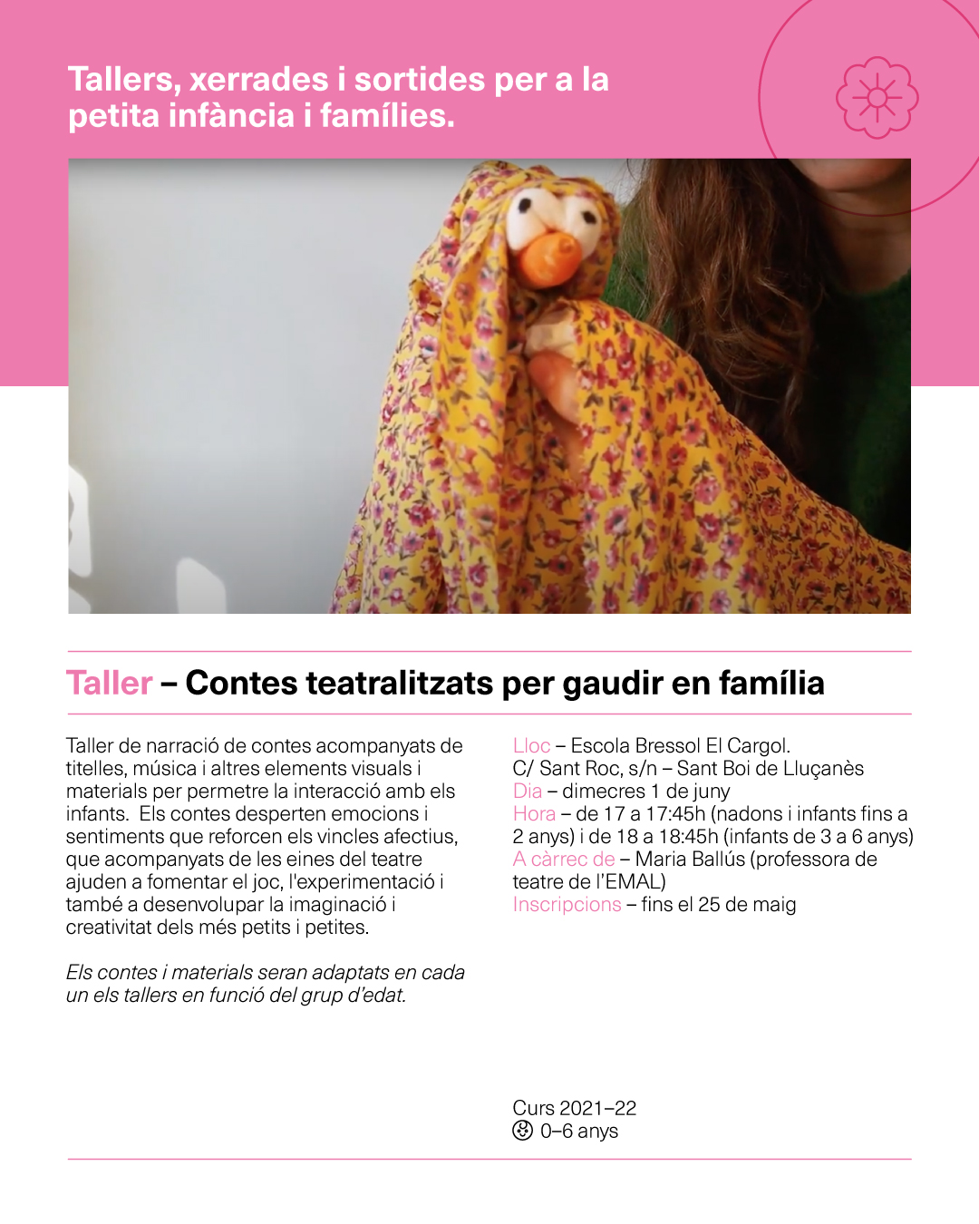 Horari: De 17h a 17:45h nadons fins a 2 anys i de 18h a 18:45h infants de 3 a 6 anys.