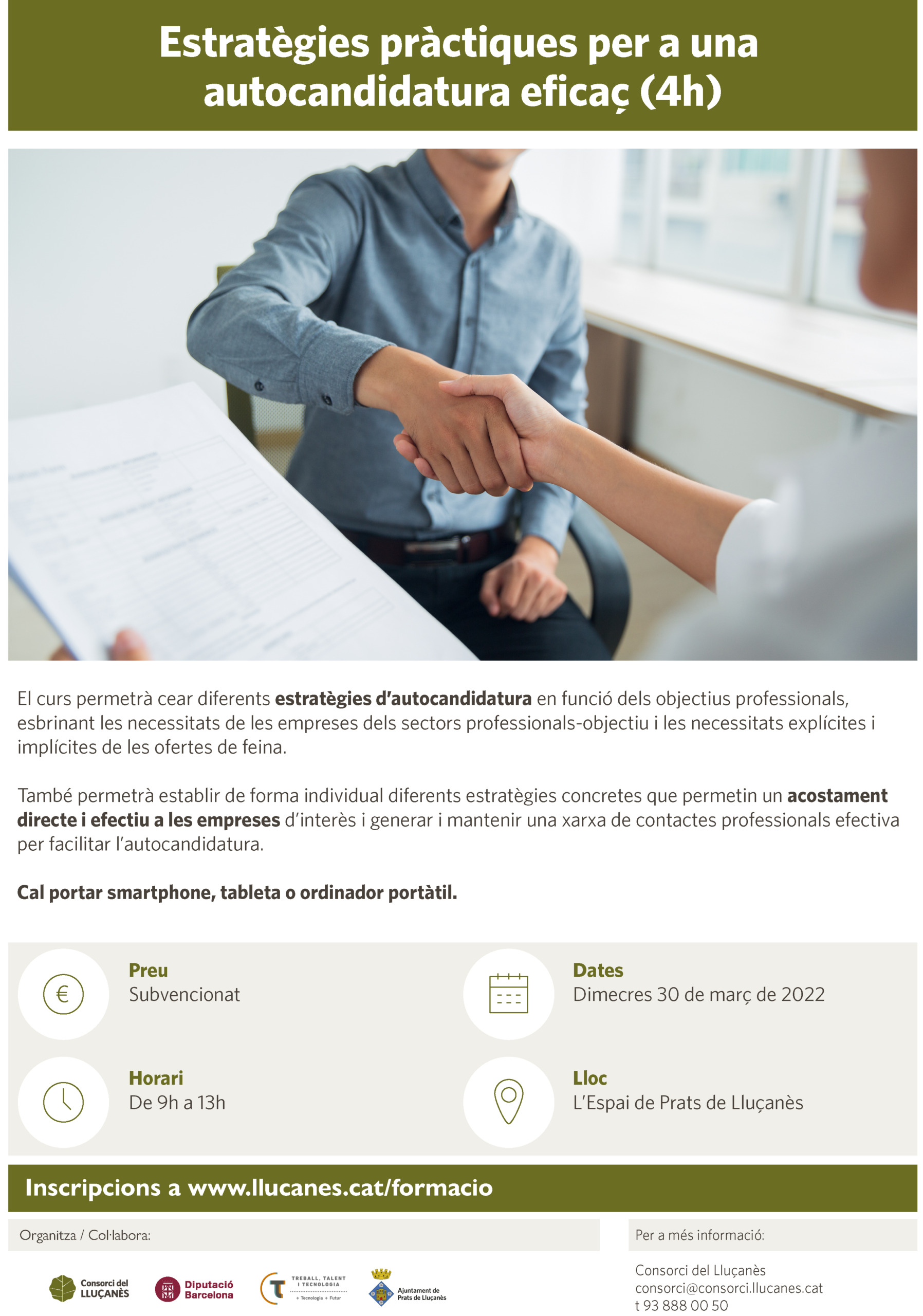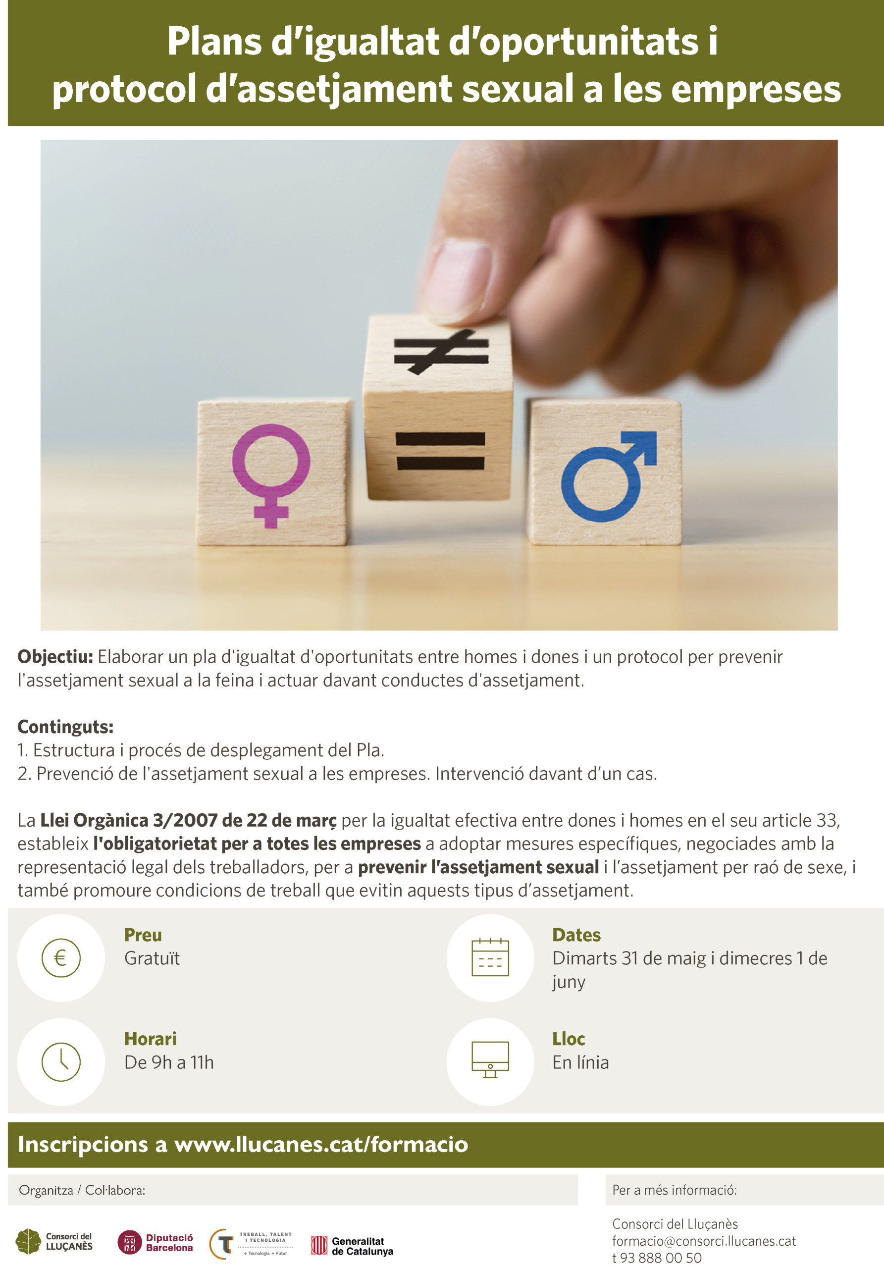 Dates: Dilluns 16 de maig (formació teòrico-pràctica). A concretar la data de l’assessorament personalitzat