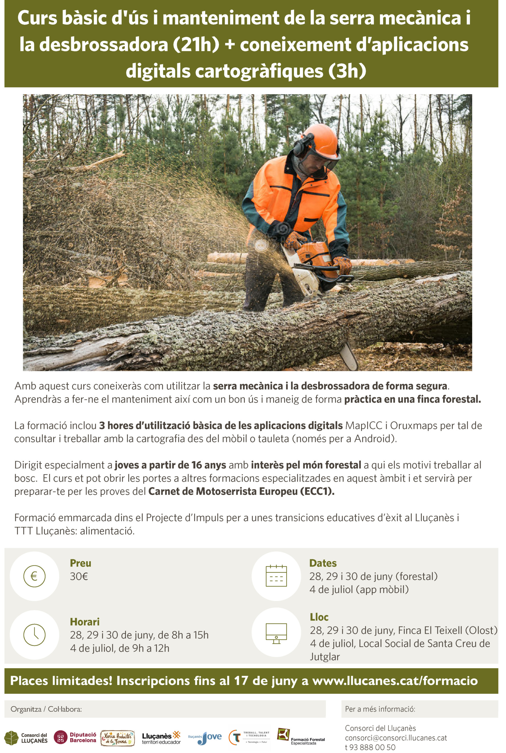Curs bàsic d’ús i manteniment de la serra mecànica i la desbrossadora (21h) + coneixement d’aplicacions digitals cartogràfiques (3h)
