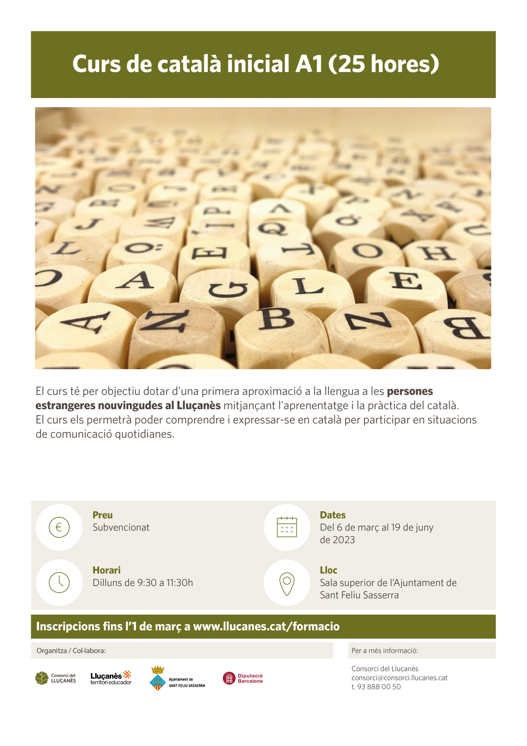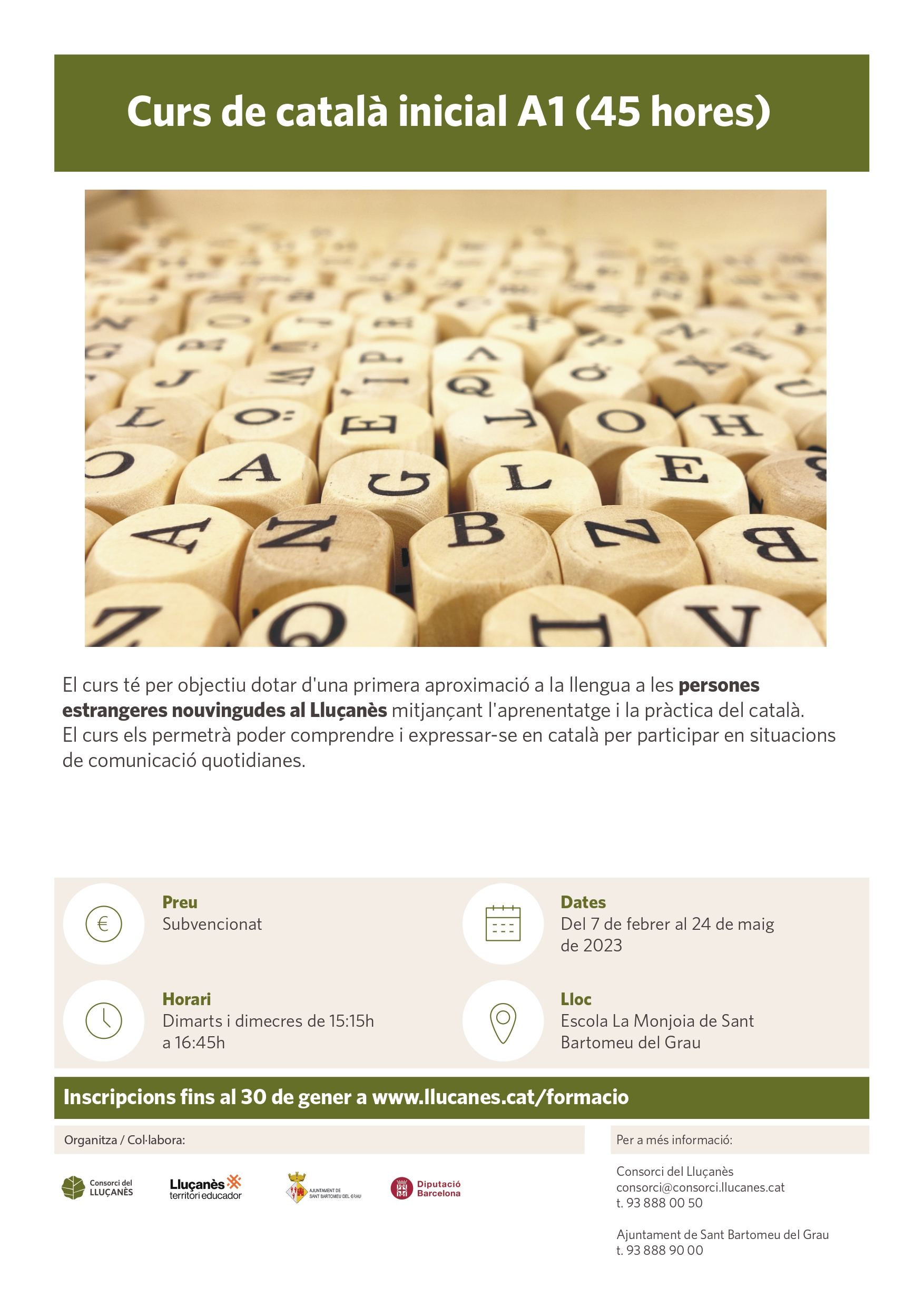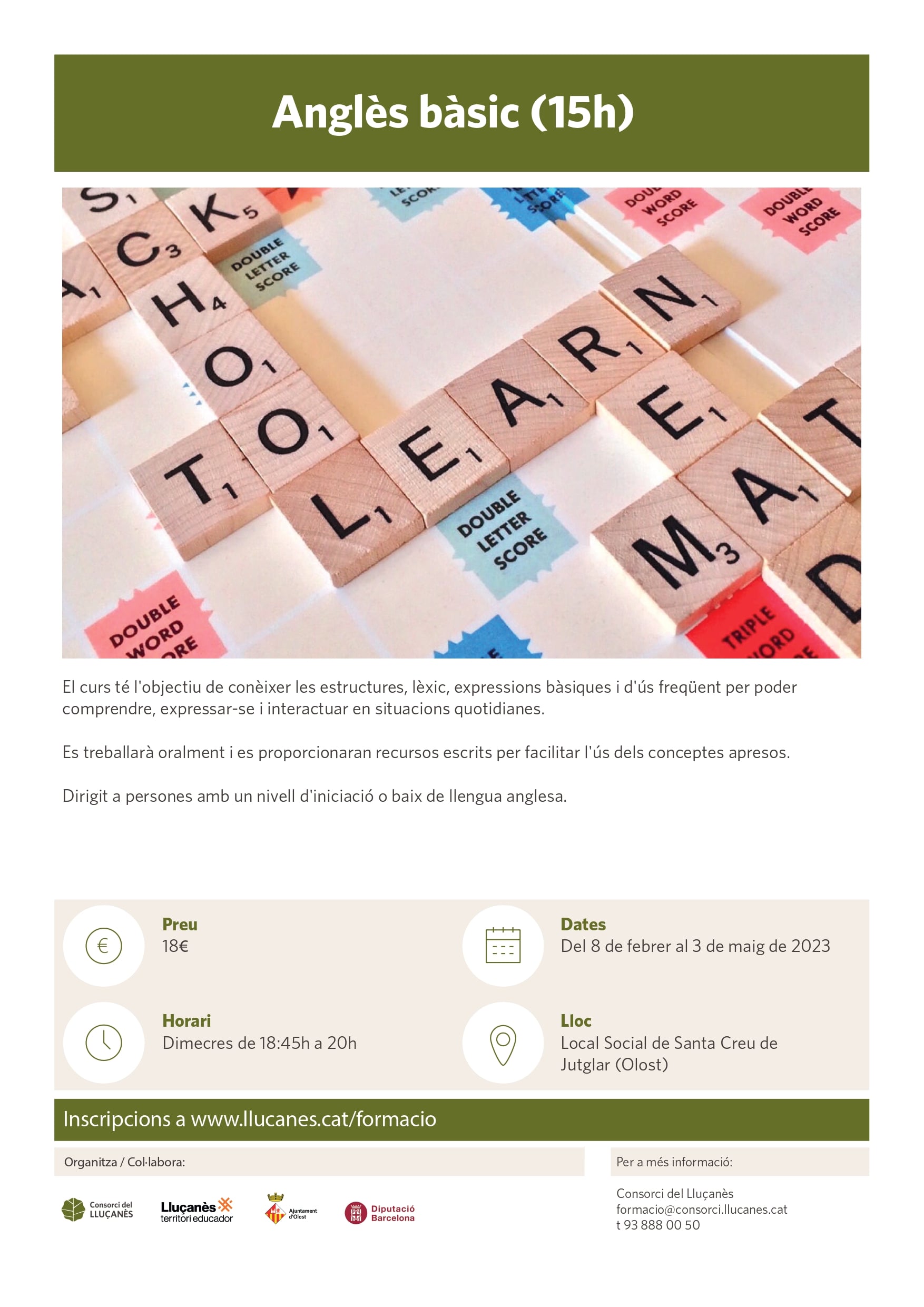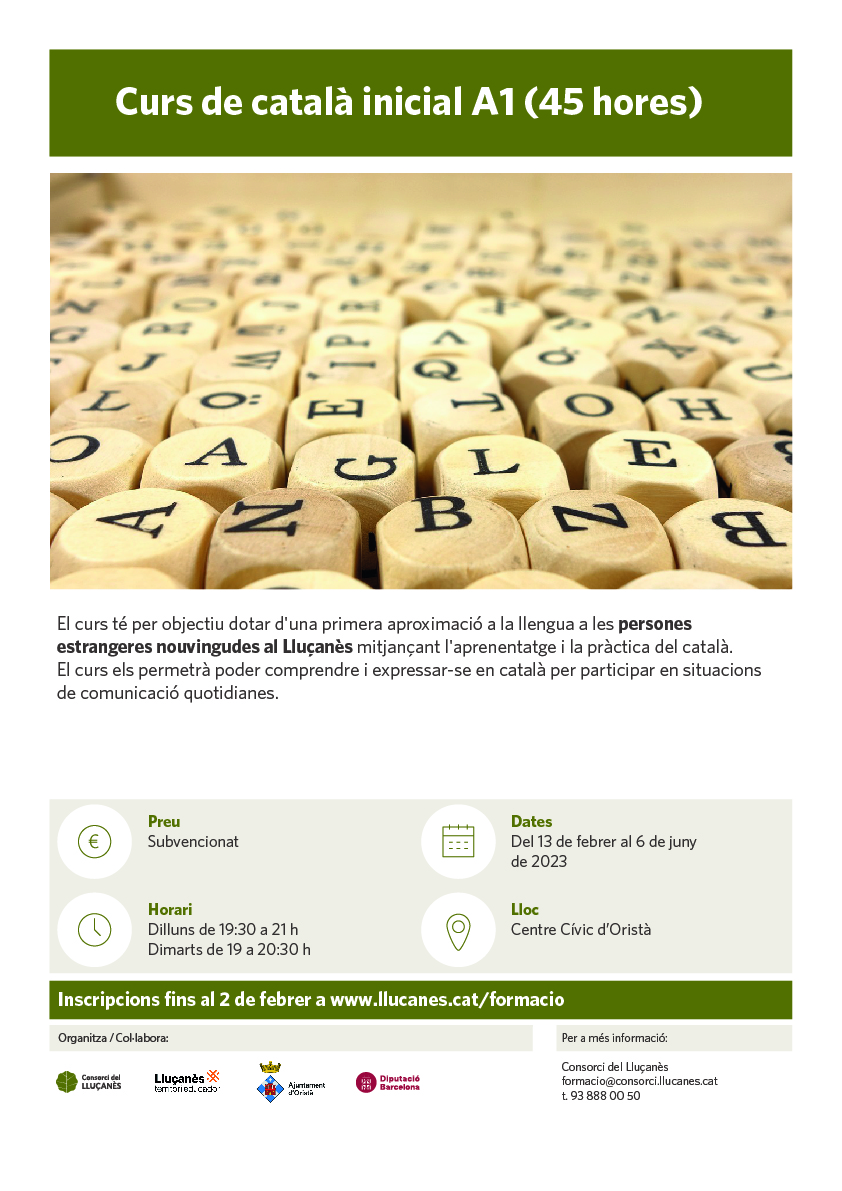 - Aquí trobaràs tots els cursos organitzats pel Consorci del Lluçanès pel període febrer – juliol 2023. Cartell amb totes les formacions.
