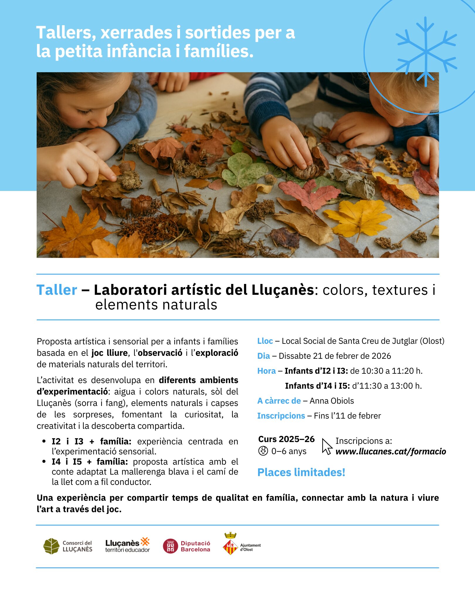 Proposta artística i sensorial per a infants i famílies basada en el joc lliure, l’observació i l’exploració de materials naturals del territori.