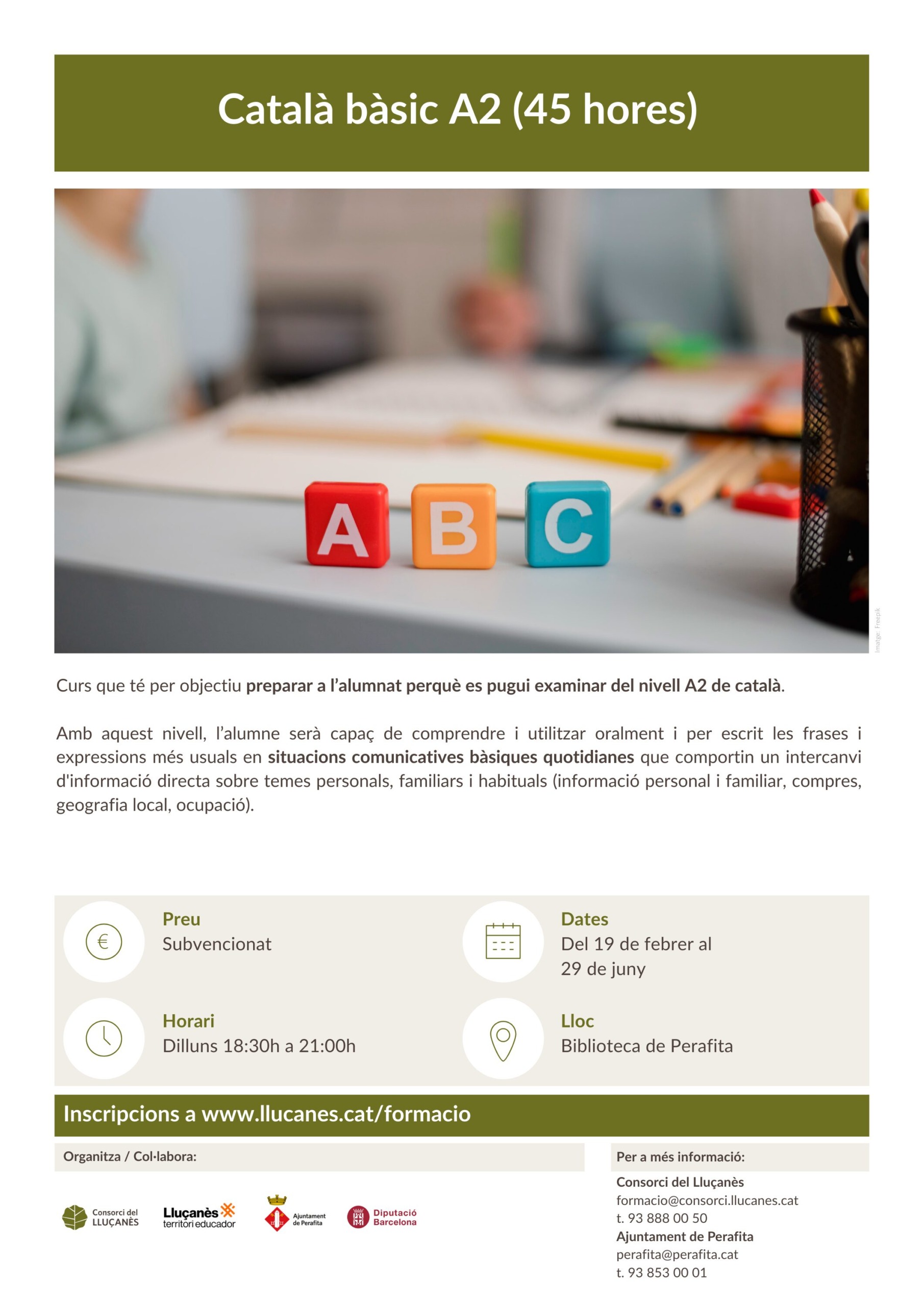 Curs que té per objectiu preparar a l’alumnat perquè es pugui examinar del nivell A2 de català.