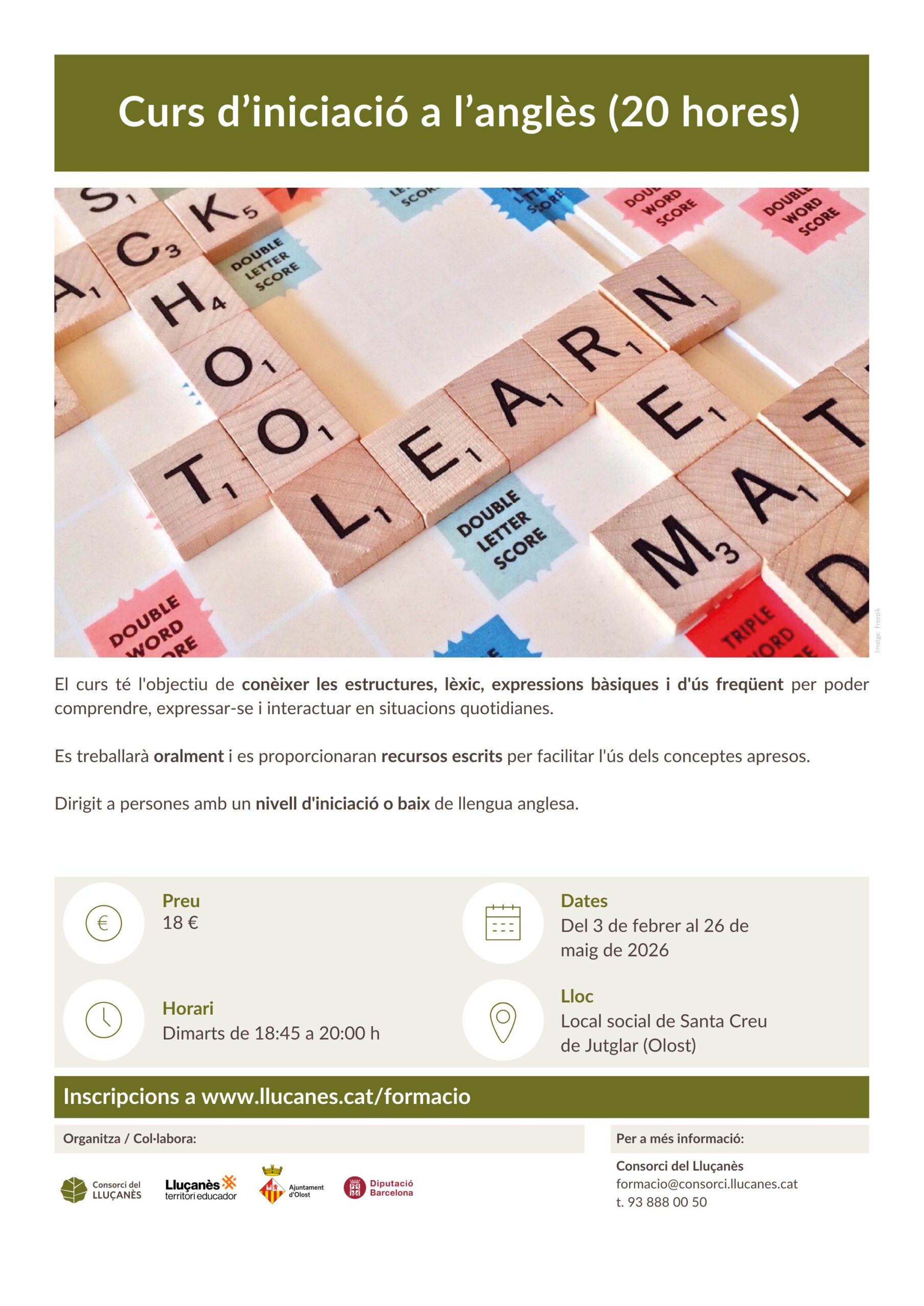 Adreçat a totes aquelles persones que ja tenen un nivell bàsic de la llengua anglesa o que ja han participat al Curs d’anglès bàsic del Consorci del Lluçanès.