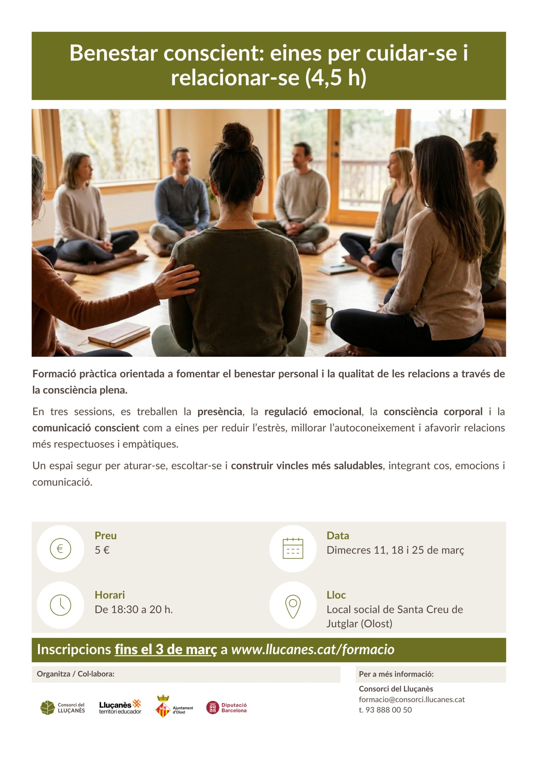 Benestar conscient: eines per cuidar-se i relacionar-se (4,5 hores)