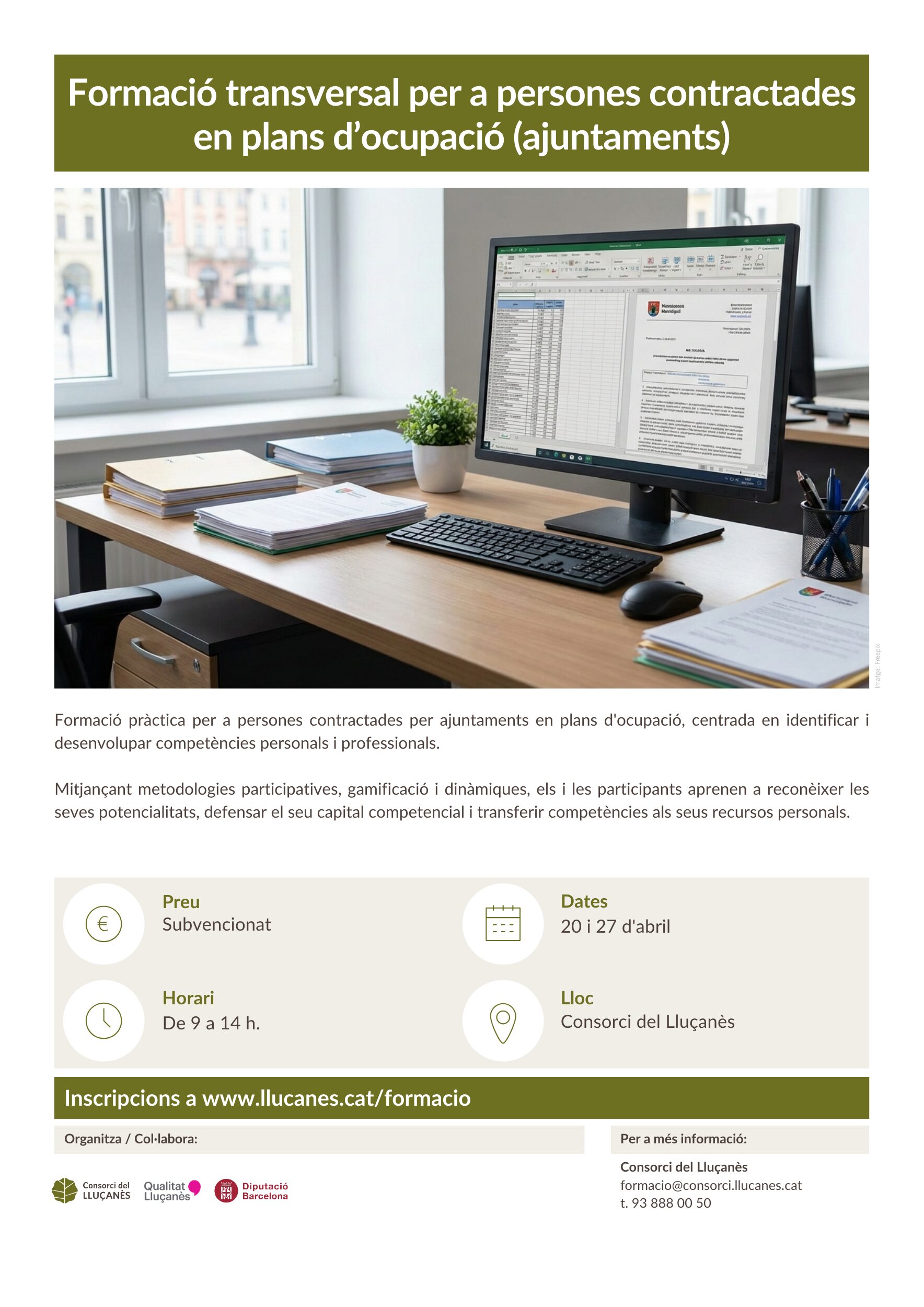 Aquí trobaràs tots els cursos organitzats pel Consorci del Lluçanès pel període febrer 2026 – juliol 2026.