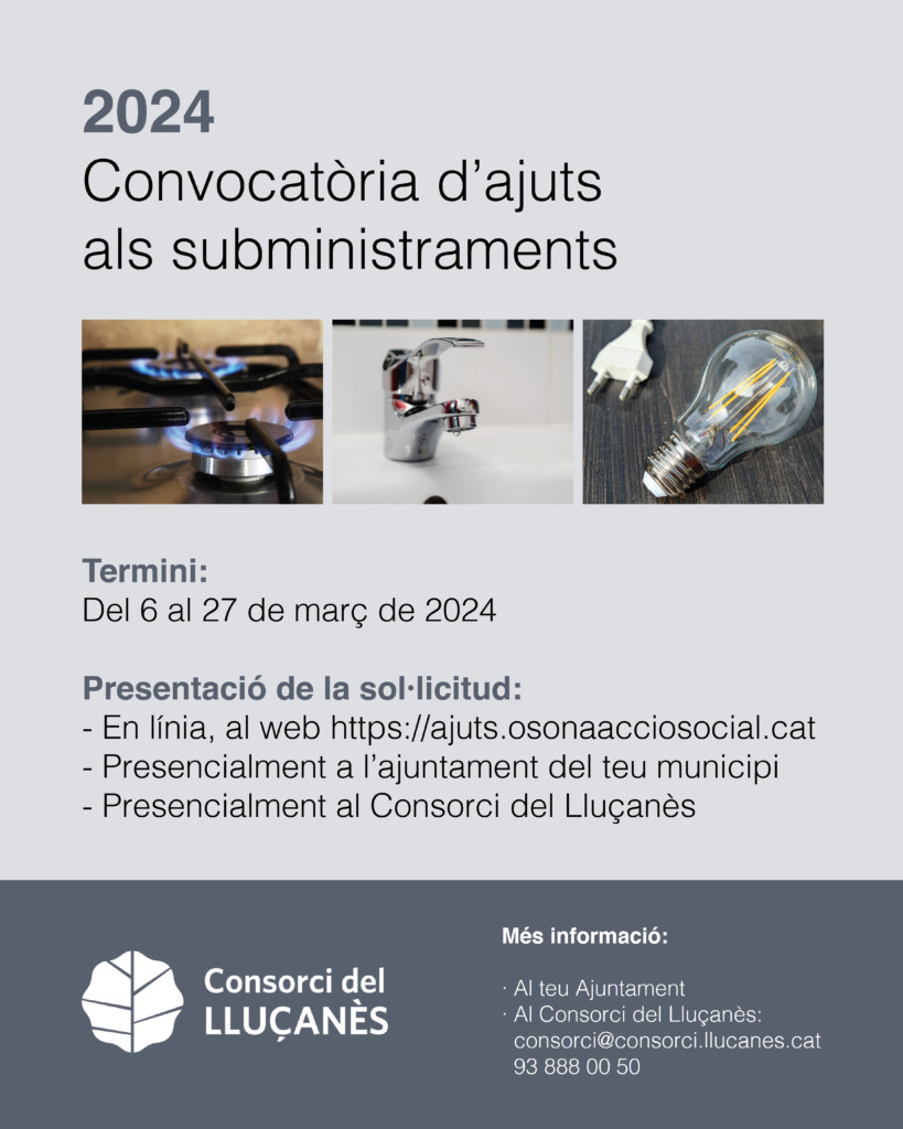 Els ajuts tenen per finalitat cobrir les despeses bàsiques de subministraments d’energia destinada al consum domèstic (entre d’altres, aigua, electricitat, gas, gasoil, butà, llenya, etc.) a les famílies que es trobin en situació de necessitat econòmica i social dels municipis del Lluçanès.