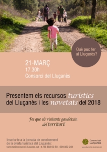 Coincidint amb l’inici de la temporada alta (Setmana Santa) es presentaran els recursos, productes i materials turístics i patrimonials que disposa el Lluçanès i les principals novetats del 2018. La jornada / sessió va dirigida principalment a agents turístics del territori, ja sigui gestors d’allotjaments turístics, explotacions i espais visitables, empreses turístiques, agents d’informació turística però també  a tota aquelles persones que habitualment tenen contacte amb visitants del territori.