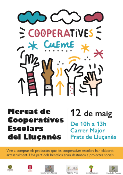 Les 4 escoles del Lluçanès que participen aquest any en el programa CuEmE, impulsat per Diputació de Barcelona i amb el suport del Consorci del Lluçanès, amb les 4 cooperatives escolars: “Petits cracks artesans” de l’escola Lluçanès de Prats de Lluçanès; “CoopArt” de l’escola Fedac de Prats de Lluçanès; “Coets” de l’escola Els Roures d’Olost i; “Roures a mà” de l’escola Els Roures de Sant Feliu Sasserra, tindran parades al mercat de Prats de Lluçanès el diumenge 12 de maig, on podreu comprar els productes que elles mateixes han elaborat.