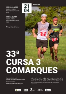 La seguirà la 2a cursa més antiga de Catalunya, el 21 d’abril. És la Cursa 3 Comarques, d’Alpens, que arriba a la seva 33a edició. Ofereix dues curses (una curta de 12,5km i una llarga de 24,5km) i desnivells considerables, enmig de corriols, boscos i paisatges naturals espectaculars de tres comarques diferents. Compta amb diferents categories masculines, femenines i per equips. Ofereix serveis de bossa corredor, ambulància, fotos i/o vídeos, vestidors i dutxes, WC, guarda-roba, possibilitat d’allotjament i pàrquing d’autocaravanes. El dia abans 20 d’abril es celebren les curses infantils