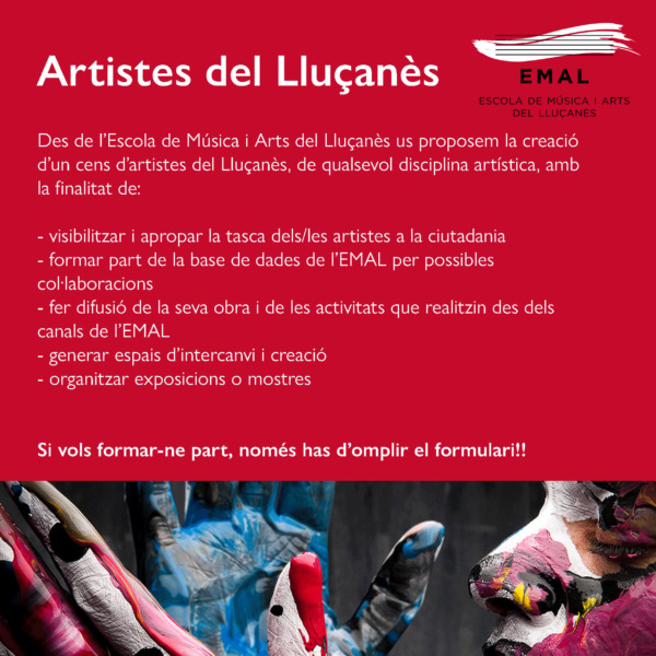 L’Escola de Música i Arts del Lluçanès (EMAL) proposa la creació d’un cens d’artistes del Lluçanès, de qualsevol disciplina artística, per posar en valor i donar a conèixer el talent local a més de possibilitar intercanvis i col·laboracions.