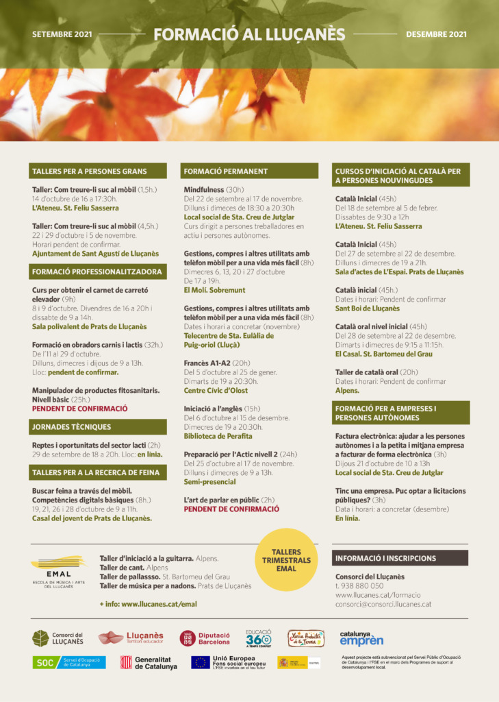 Un any més el setembre arriba amb un nou programa de formació al Lluçanès, impulsat pel Consorci del Lluçanès i amb el suport dels ajuntaments. El podeu consultar aquí.