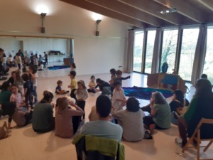 Els tallers van anar a càrrec de Marta Cruz, de la companyia Clau de Conte, captivant els infants a través de dues històries ben curioses. Per una banda, “Colors”, enfocat als nadons de 0 a 2 anys, repassava l’aventura d’un camaleó viatger que descobreix els racons del món a través dels colors i els sentits. Per l’altra, “La Granota Tiddalick”, destinat a infants de 3 a 6 anys, que donava a conèixer la llegenda australiana de la granota més gran del món… que va deixar tot un llac ben sec.