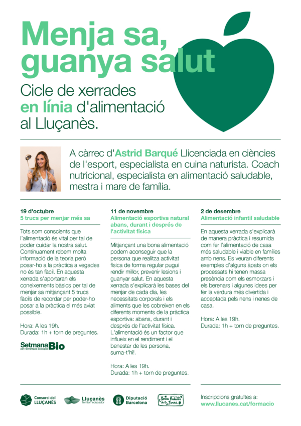 Des del Consorci del Lluçanès s’ha organitzat un cicle de xerrades posant en valor l’alimentació sana i saludable de forma coordinada en tres àmbits.