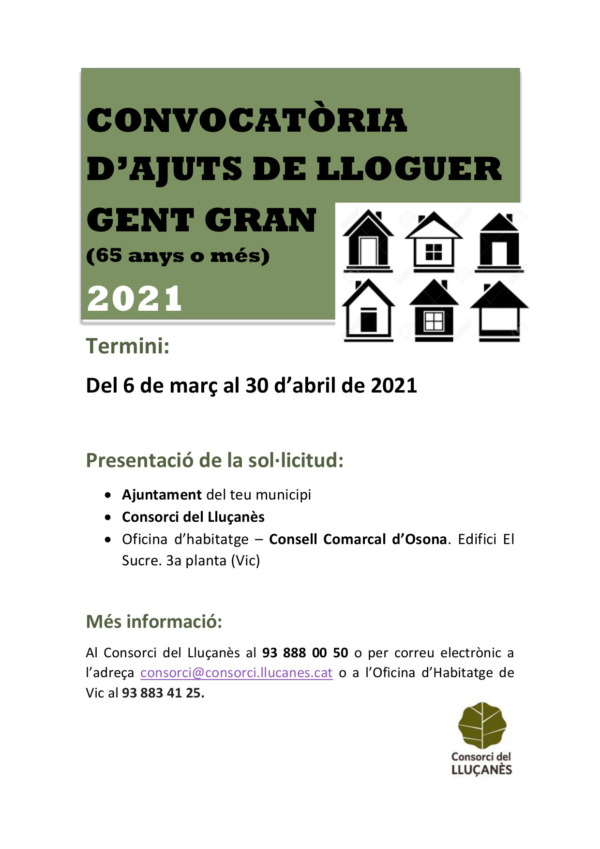 Del 6 de març al 30 d’abril les persones de 65 anys o més, poden sol·licitar els ajuts de lloguer per l’any 2021.