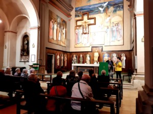 El dia es va despertar amb pluja i es va haver de replantejar el programa de la Trobada. Finalment, es va endarrerir l’hora d’arribada i la colla més gran, activa i més sociable del Lluçanès es va retrobar un any més. A l’església de Sant Pere, en Ramon Casals i la Pilar Subirats van parlar de l’edifici, sobretot de les pintures del presbiteri i del baptisteri realitzades per Joaquim Busquets entre el 1991-1993. Al sala d’exposicions El Niu de la Casa de Cultura, es va oferir una exposició de labors, pintures i manualitats per a tots els gustos. El grup de costura i manualitats té una llarga tradició, i es troben tots els dimarts un parell d’horetes a la tarda.