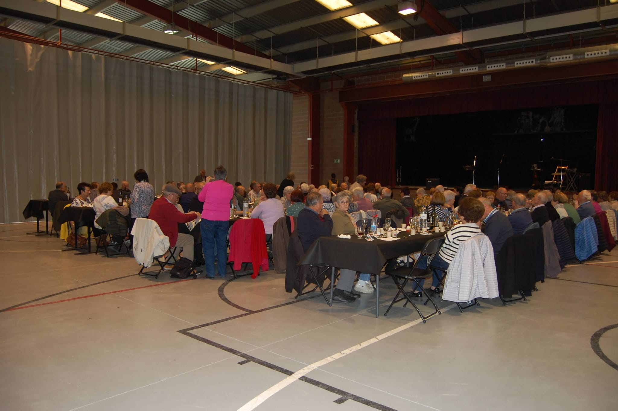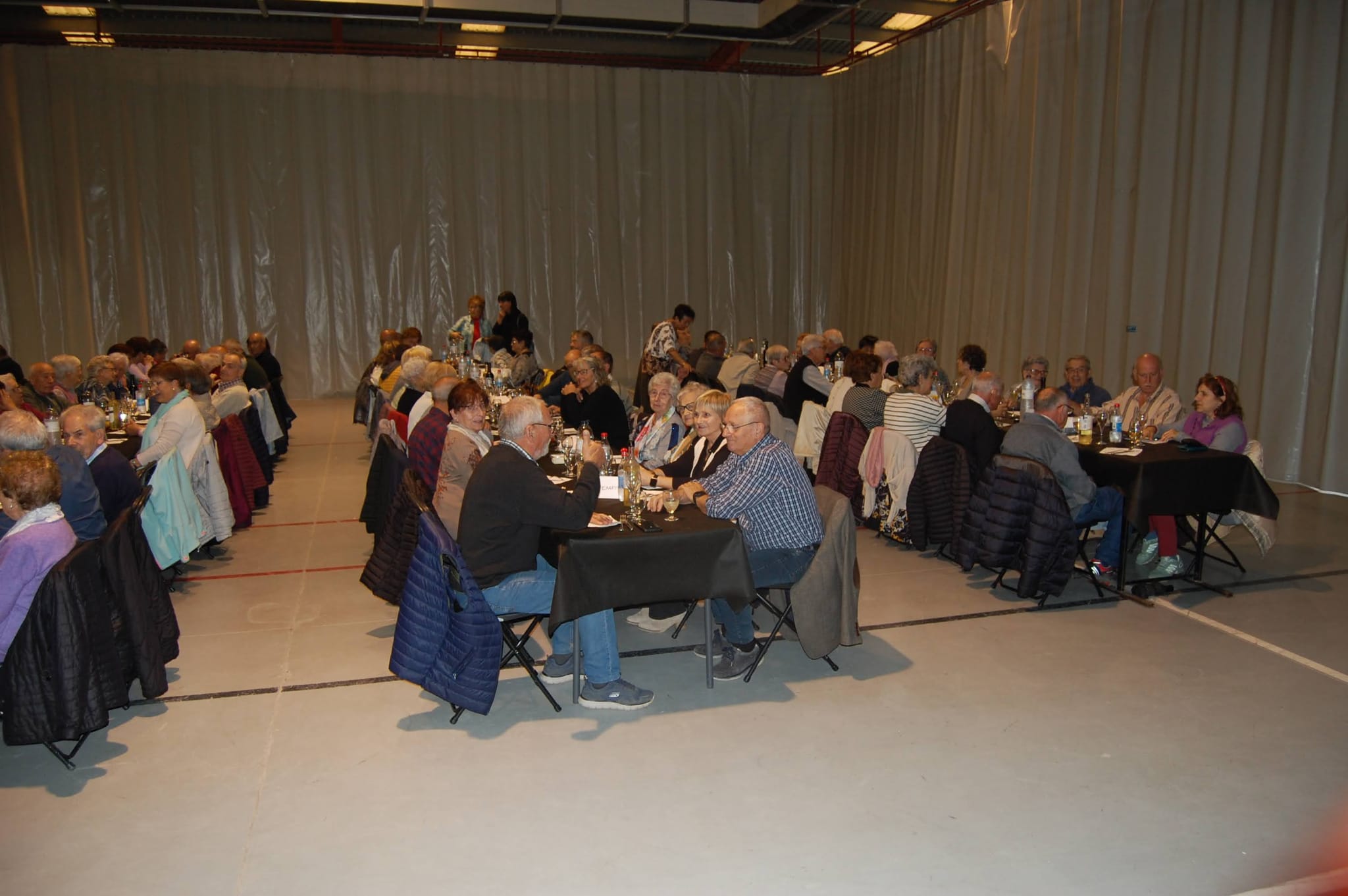 El dinar es va celebrar al Pavelló amb més d’un centenar de comensals. En Marc del Cafè del Mig va servir una fideuà de primer, pollastre amb gambes de segon i gelat de postres. Durant el brindis, el tenor local Francesc Viñas va acompanyar els assistents amb el Libiamo de La Traviata, en versió lliure, de salutació als pobles assistents a la trobada. El Batlle Joan Compte acompanyat de Dolors Serra, presidenta de l’Associació de la Gent Gran El Remei de Perafita, va fer la salutació i la benvinguda per la desena trobada, agraint a la colla organitzadora del poble la feina feta en la organització. Tot seguit, fi de festa amb el tercet Les Veus del Ter convidant a ballar amb ball de parella i en línia, a gust de tothom.