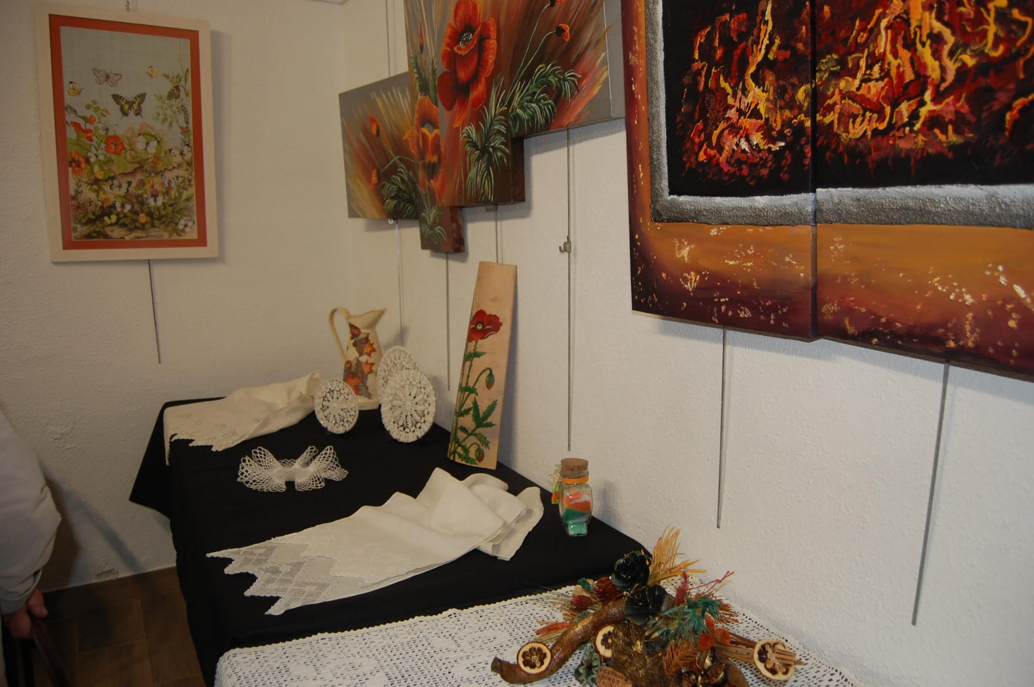 El dia es va despertar amb pluja i es va haver de replantejar el programa de la Trobada. Finalment, es va endarrerir l’hora d’arribada i la colla més gran, activa i més sociable del Lluçanès es va retrobar un any més. A l’església de Sant Pere, en Ramon Casals i la Pilar Subirats van parlar de l’edifici, sobretot de les pintures del presbiteri i del baptisteri realitzades per Joaquim Busquets entre el 1991-1993. Al sala d’exposicions El Niu de la Casa de Cultura, es va oferir una exposició de labors, pintures i manualitats per a tots els gustos. El grup de costura i manualitats té una llarga tradició, i es troben tots els dimarts un parell d’horetes a la tarda.