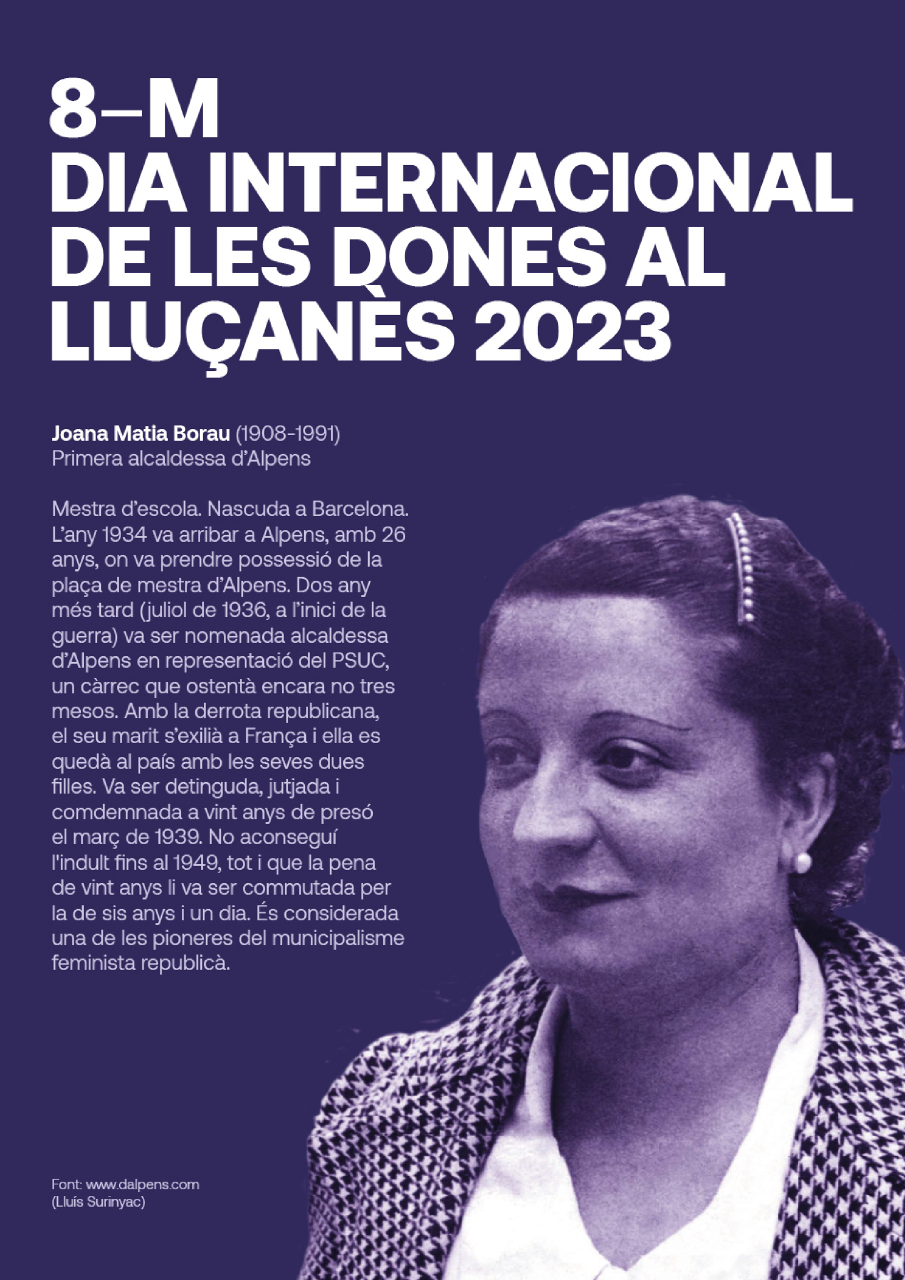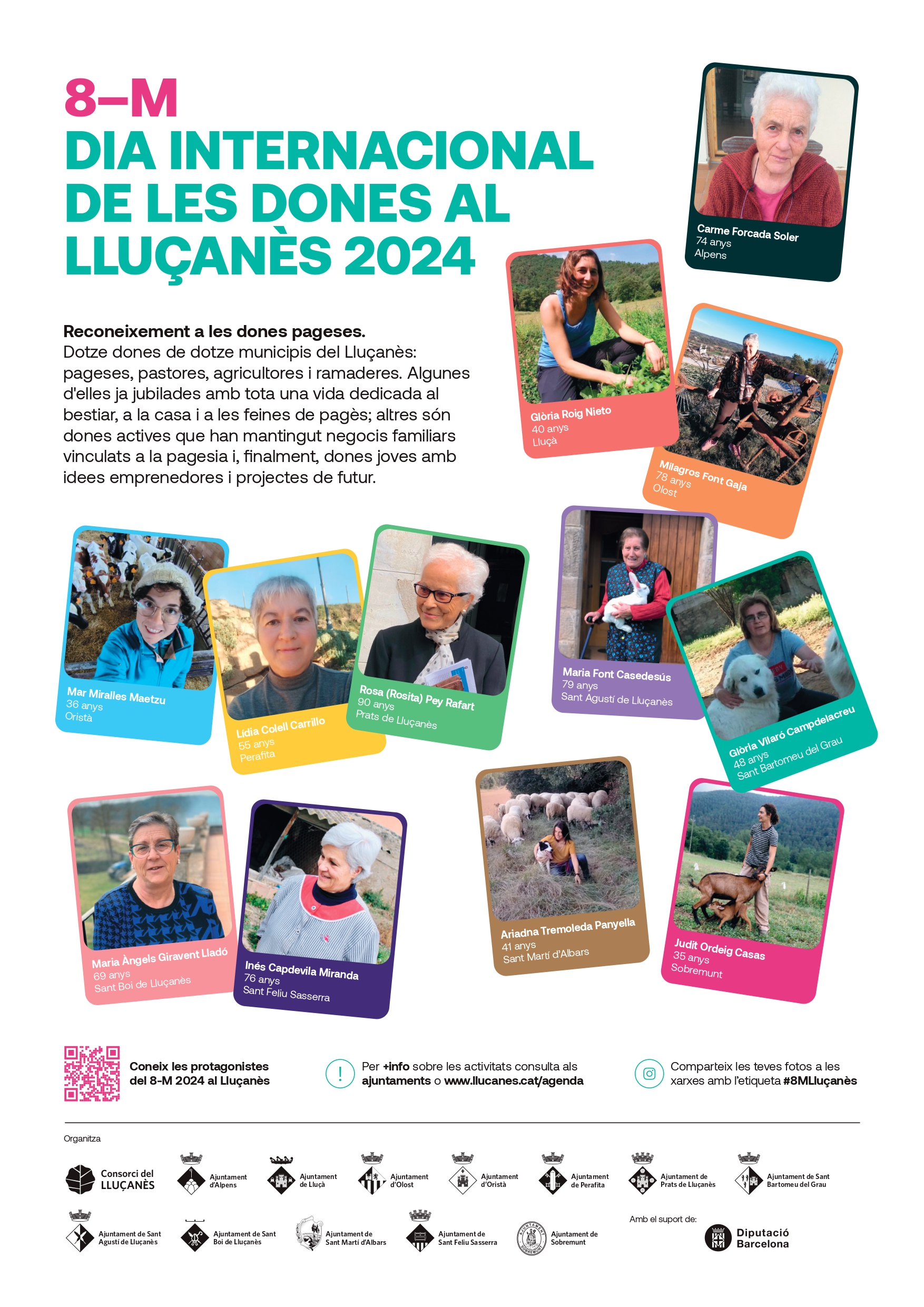 El 8 de març, Dia Internacional de les Dones, s’ha convertit en un símbol per a les dones dels cinc continents i està reconegut per l’Organització de les Nacions Unides (l’ONU). Al Lluçanès, les regidories d’Igualtat dels ajuntaments dels diferents municipis i el Consorci del Lluçanès organitzen una àmplia programació d’activitats per reivindicar la igualtat entre homes i dones.