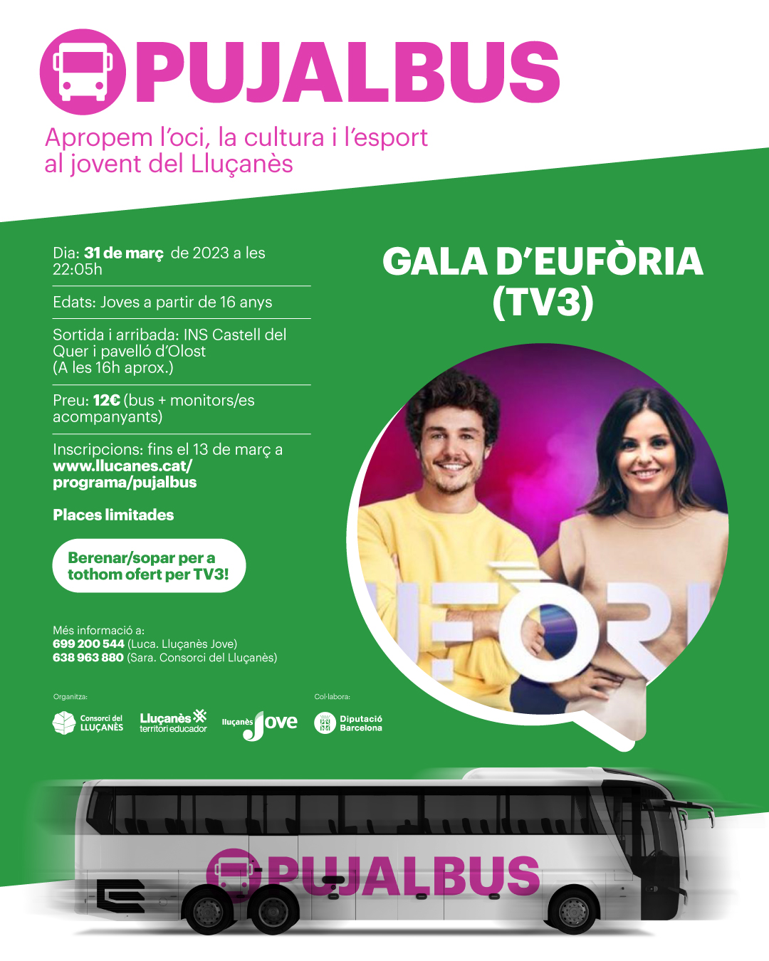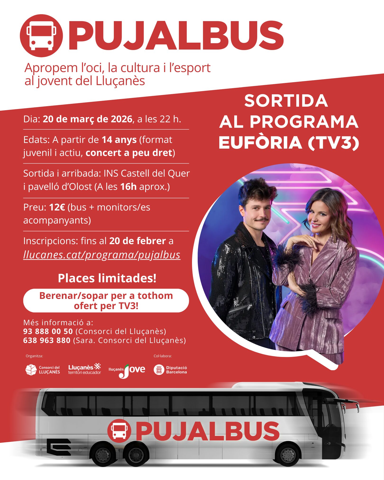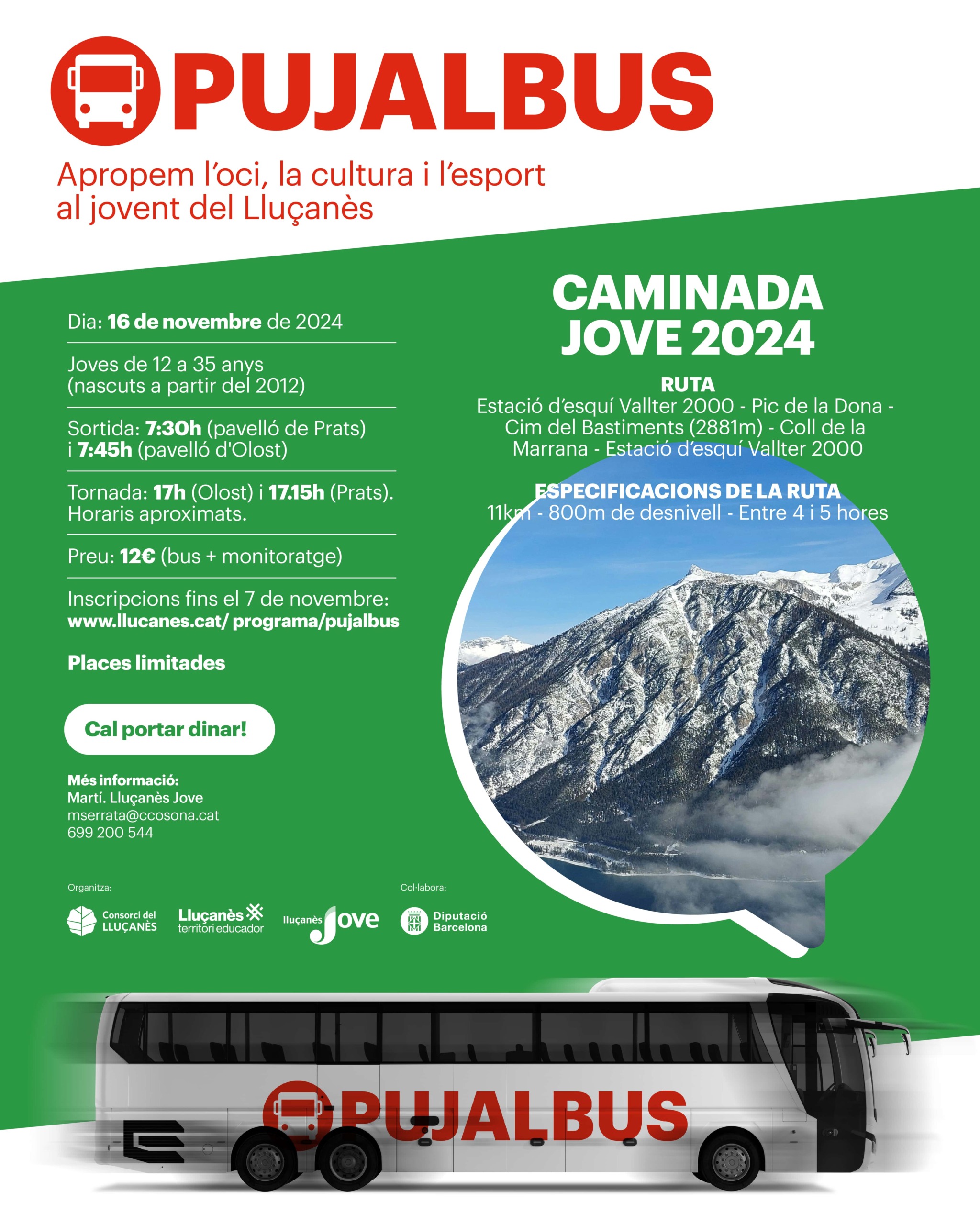 Programa destinat a l’organització d’autobusos per portar les persones joves del Lluçanès a diferents activitats d’oci, cultura i esports, vetllant perquè siguin inclusives, accessibles i participatives.