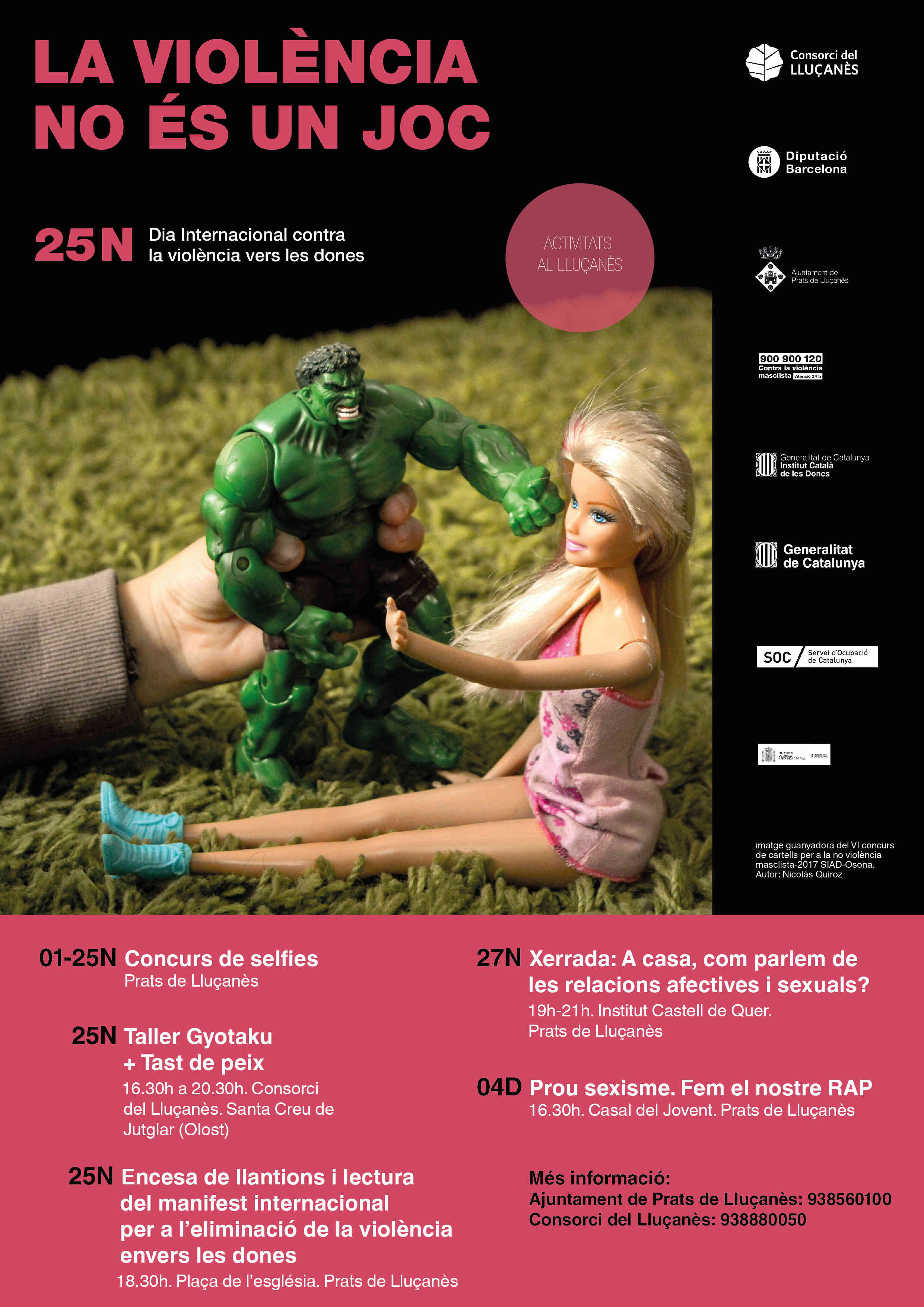 Sota el lema “La violència no és un joc”, s’han programant diverses activitats per tal de lluitar per l’eliminació de la violència envers les dones. Les activitats al Lluçanès constaran de diferents accions: concurs de Selfies, tallers, xerrades, concentracions i lectura de manifest, entre altres.