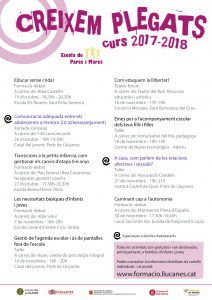Comença una nova edició del programa Creixem Plegats – l’Escola de pares i mares al Lluçanès; un programa que aportarà a les famílies espais de reflexió i aprenentatge sobre diferents aspectes educatius que els permeti establir uns vincles familiars positius que possibilitin al fill/a un millor aprenentatge i una construcció personal equilibrada, emprenedora i creadora.