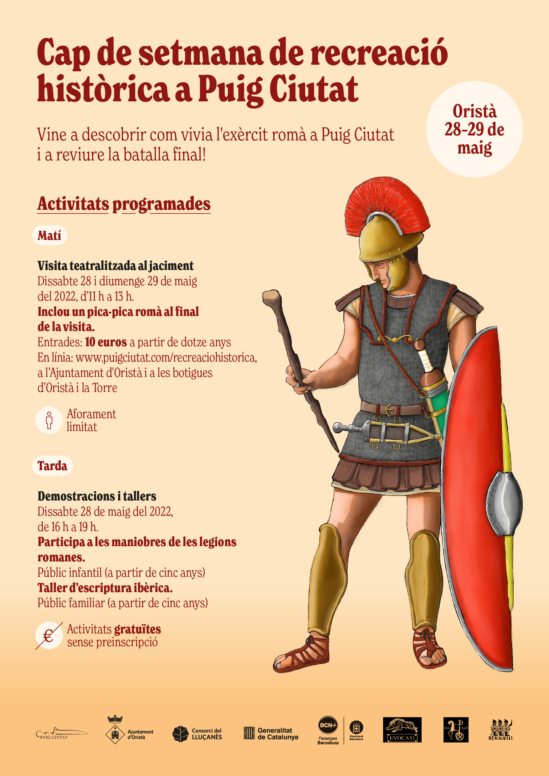 El proper dissabte 28 i diumenge 29 de maig es portarà a terme un esdeveniment de recreació històrica al poblat romà de Puig Ciutat (Oristà, Lluçanès-Osona), que permetrà reviure i conèixer com hi vivien els habitants i soldats, i com van ser els últims moments abans de la seva destrucció.