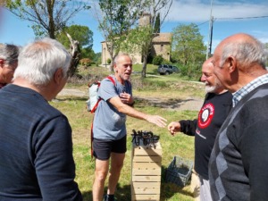 A primera hora, 125 persones van participar en la caminada que va sortir d’Olost, passant pel pantà de la Gavarresa fins al nucli antic de Santa Creu de Jutglar. Allà mateix, se les va convidar a un esmorzar mentre el pastor-músic Ernest Sitjes, juntament amb Jordi Bosch, animaven els assistents amb peces interpretades amb acordió.