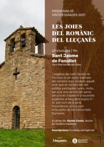 Les visites guiades es realitzaran un dissabte de cada mes. Les tres primeres visites es portaran a terme els mesos de tardor: octubre, novembre i desembre i permetran conèixer tres joies del romànic del Lluçanès: Sant Jaume de Fonollet, la Cripta/Tribuna d’Oristà i Sant Salvador de Bellver.