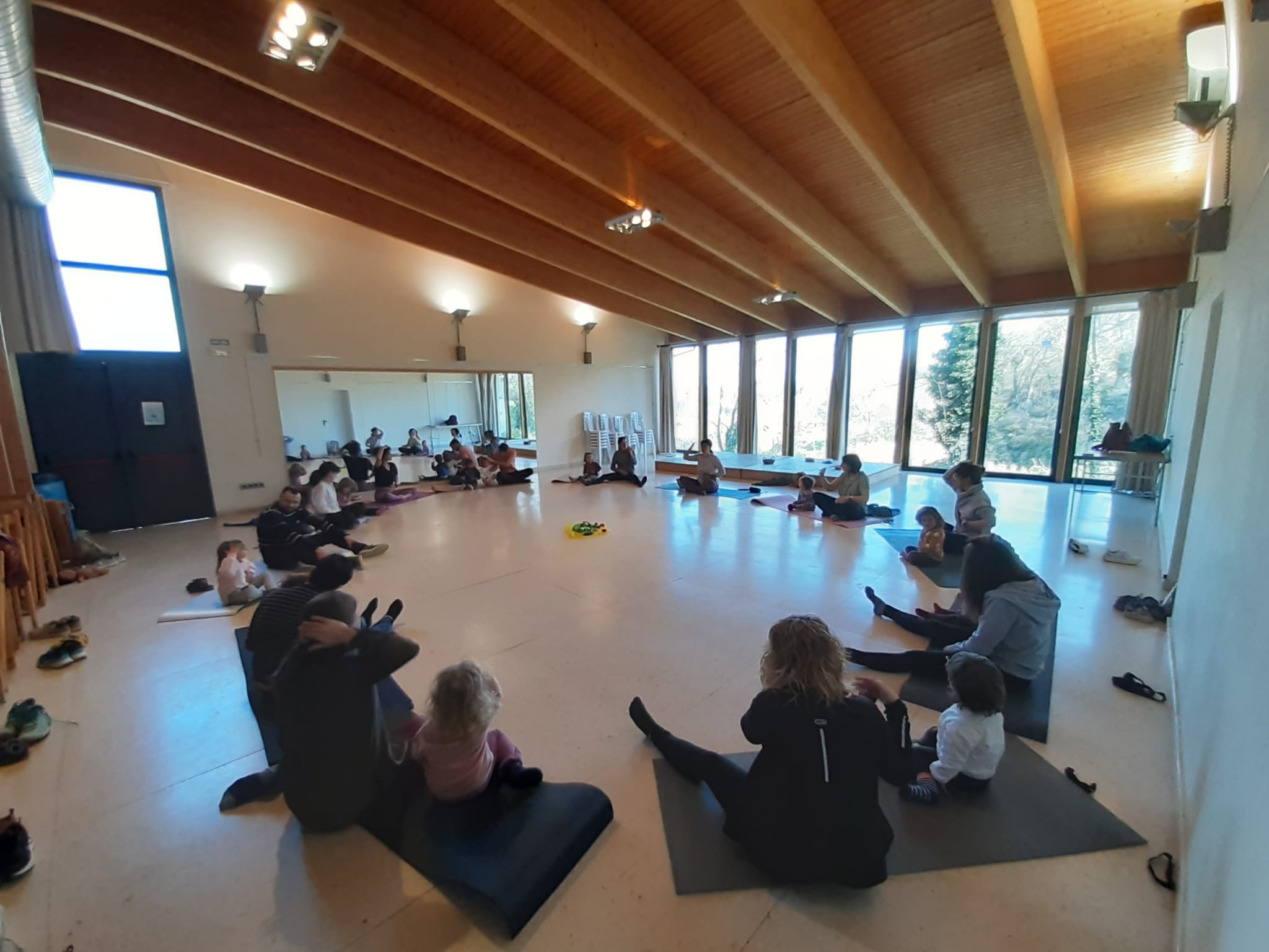 - Les famílies amb infants fins als 4 anys van realitzar una sessió de ioga en família a la sala gran del local social.